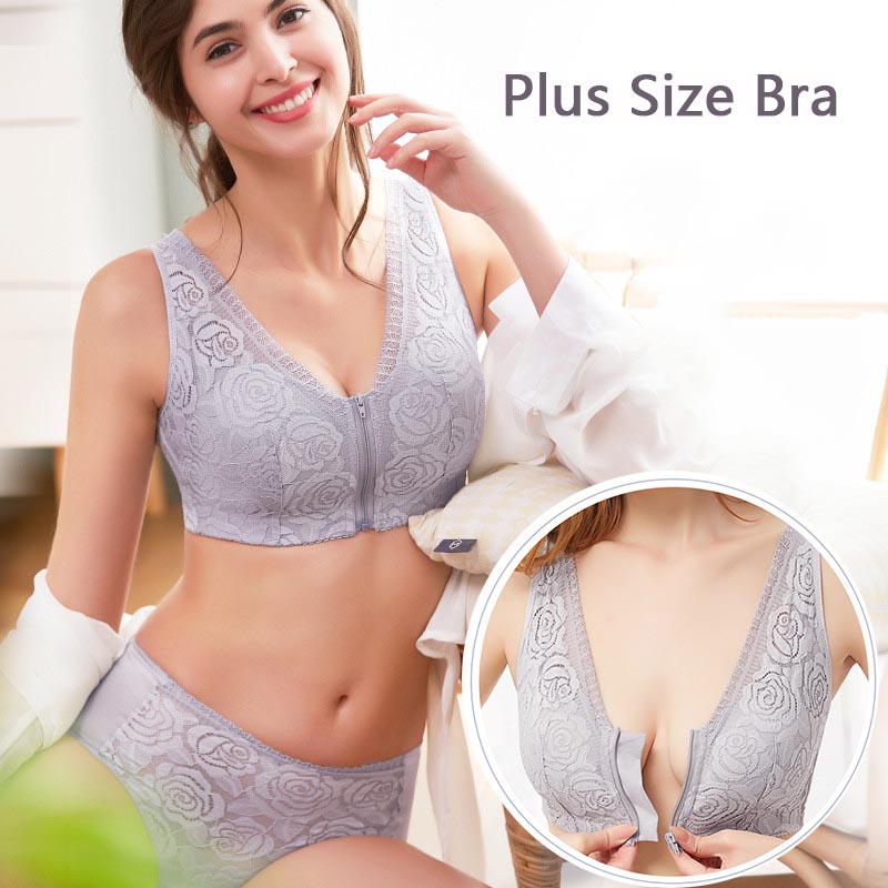 Mother's Day Gift 40% Off 🔥-Front Zipper Lace Full Coverage Wire-Free Bra-Plus Size