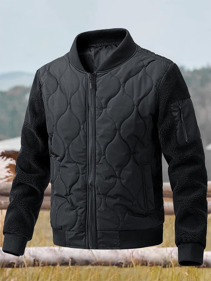 Men's Vintage Pleated Cotton Polar Fleece Patchwork Casual Cotton Jacket
