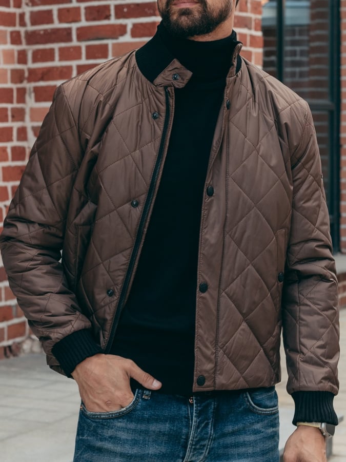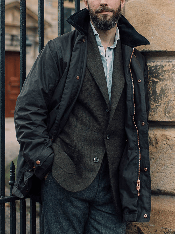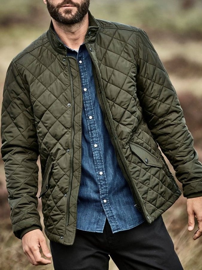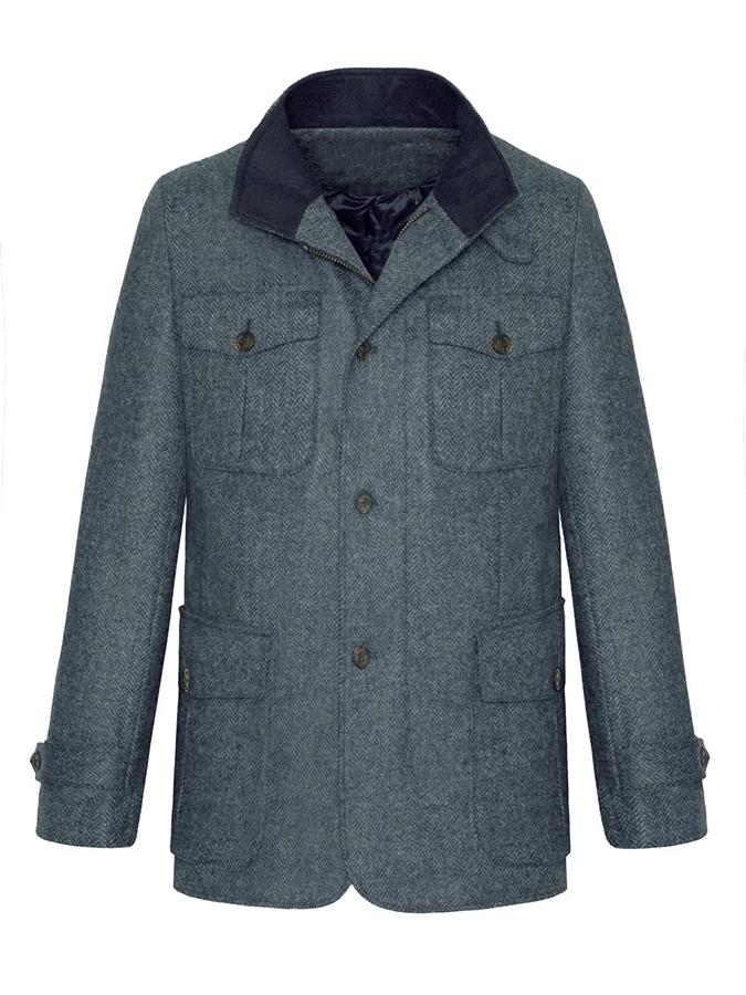 Men's Vintage Jacquard Herringbone Multi-Pocket Warm Jacket