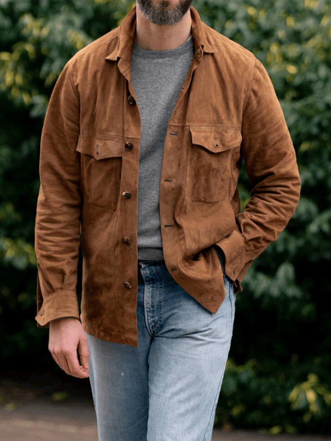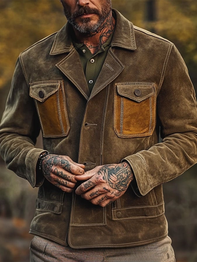 Men's Vintage Suede Multi-Pocket Lapel Outdoor Jacket
