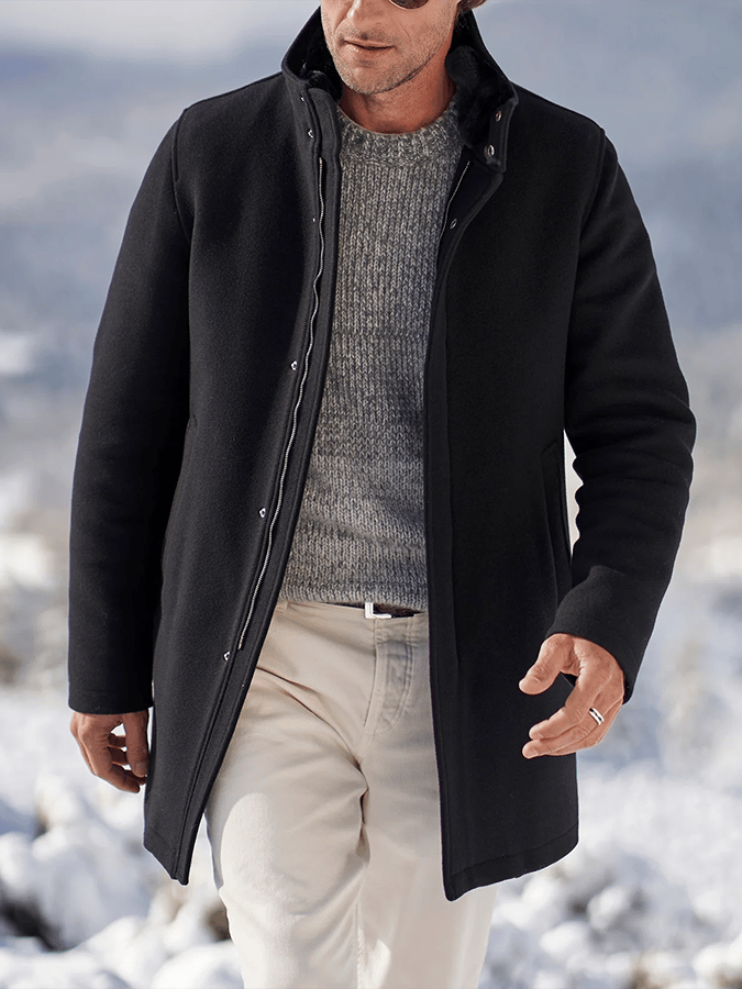 Men's Retro Solid Color Zipper Design Plush Collar Warm Jacket