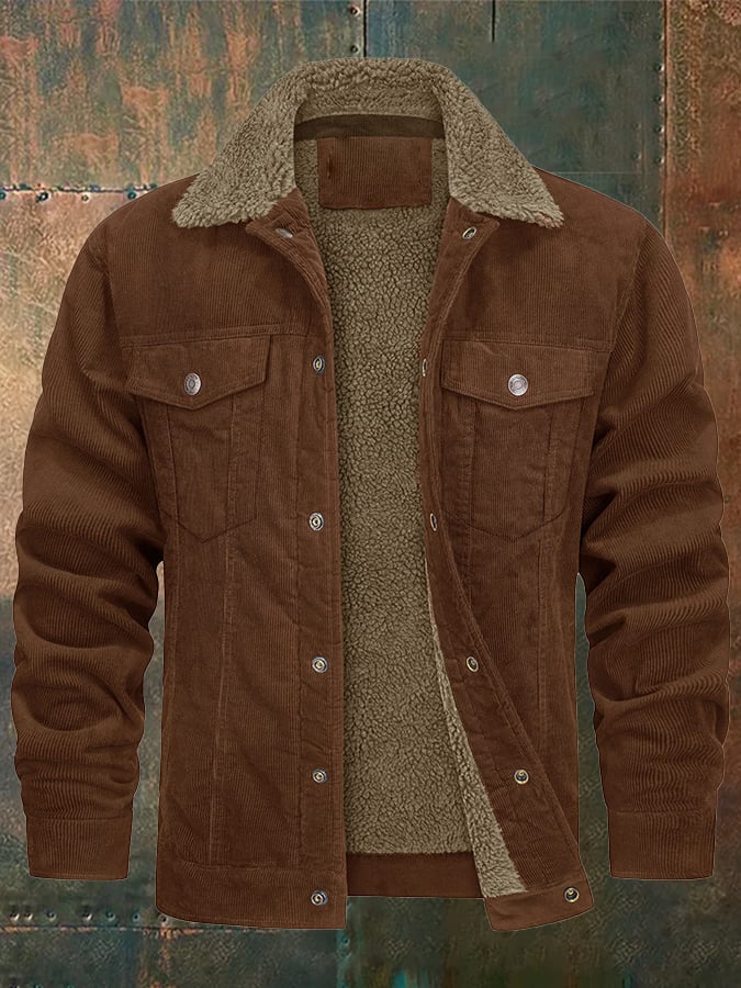 Men's Casual Fleece Lined Lapel Corduroy Trucker Jacket