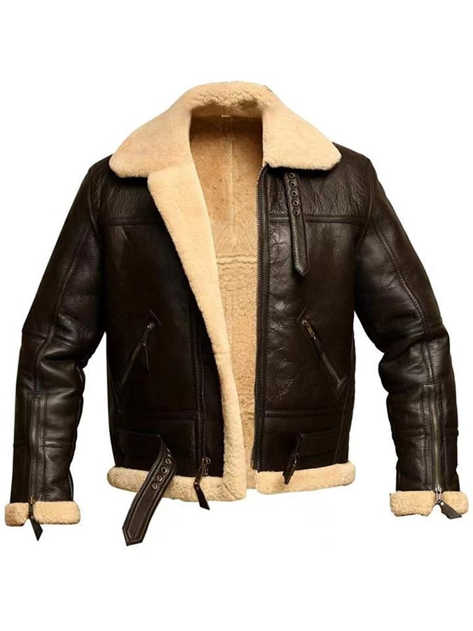 Men's Vintage Casual Lapel Zipper Faux Fur Leather Moto Jacket