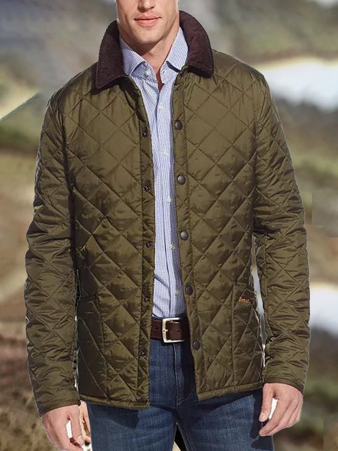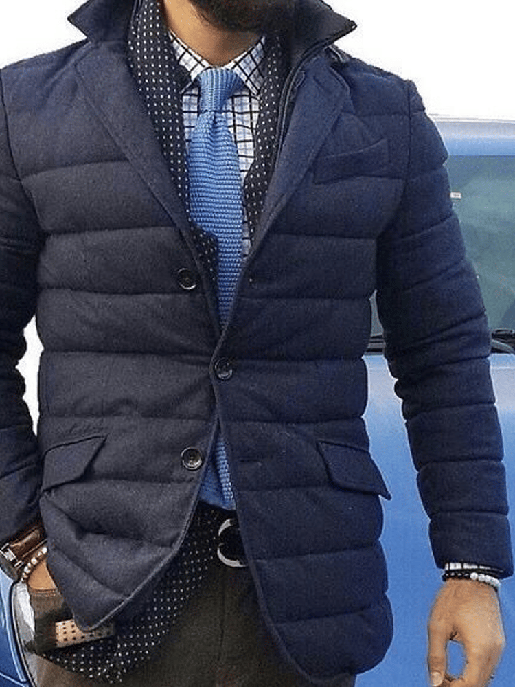 Men's Fashionable Open Pocket Button Design Quilting Imitation Leather Plush Warm Coat