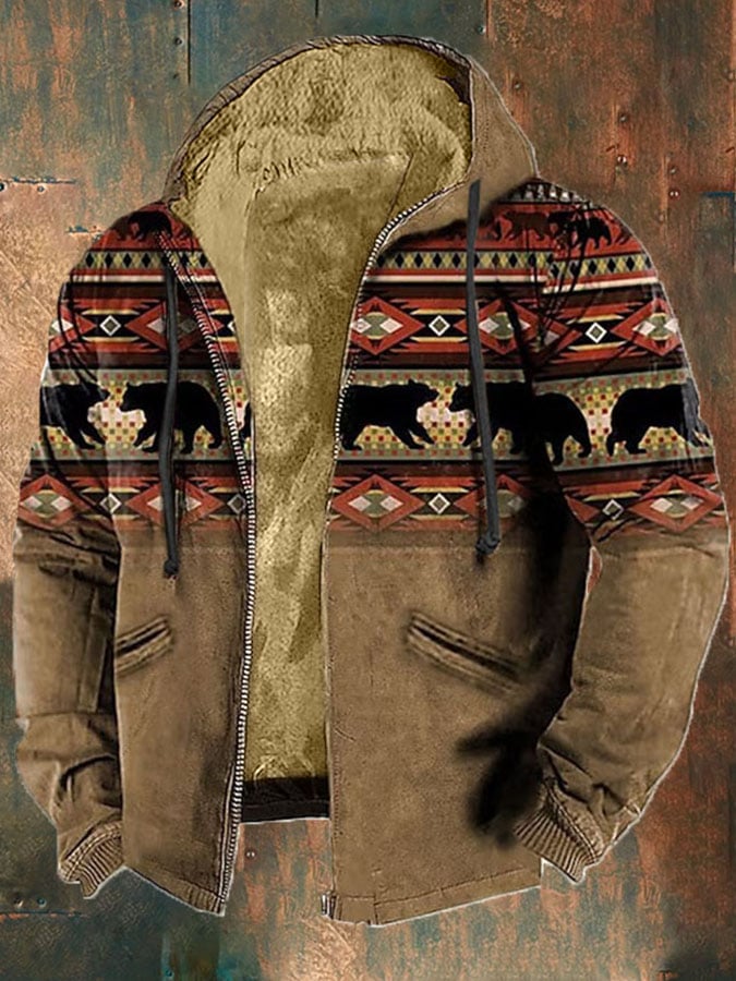 Men'S Retro Western Print Cotton Zipper Outerwear