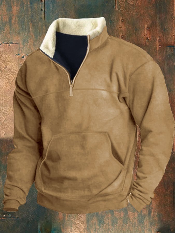Men's Contrast Color Fur Collar Zipper Casual Sweatshirt