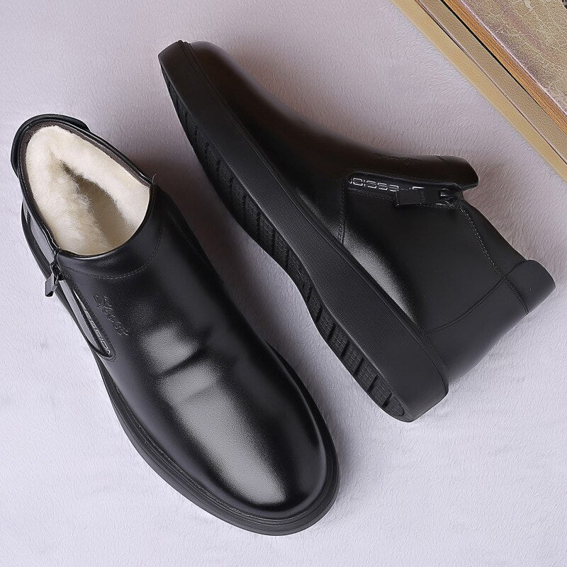 Men's Waterproof Warm Leather Boots With Fur Winter