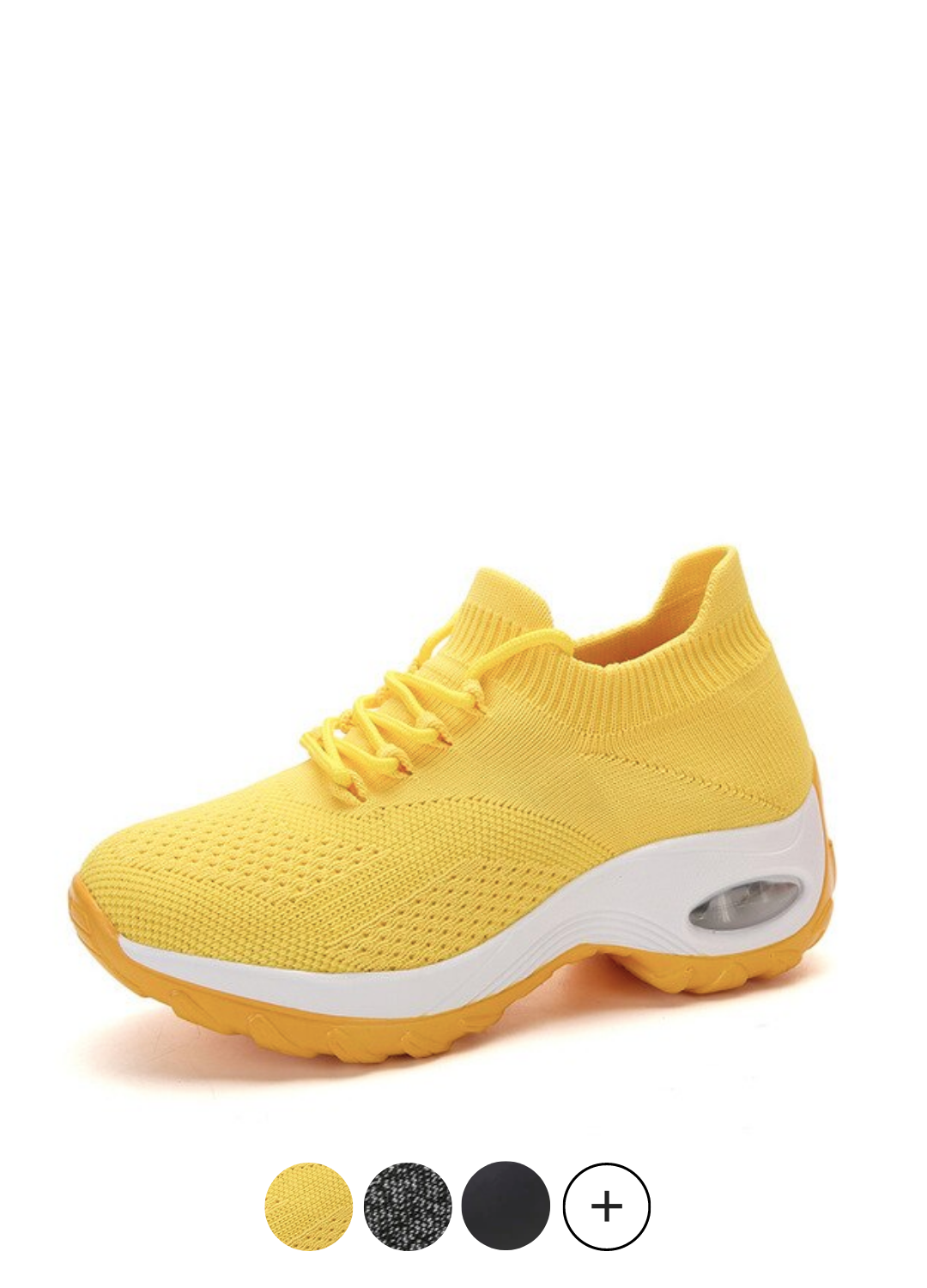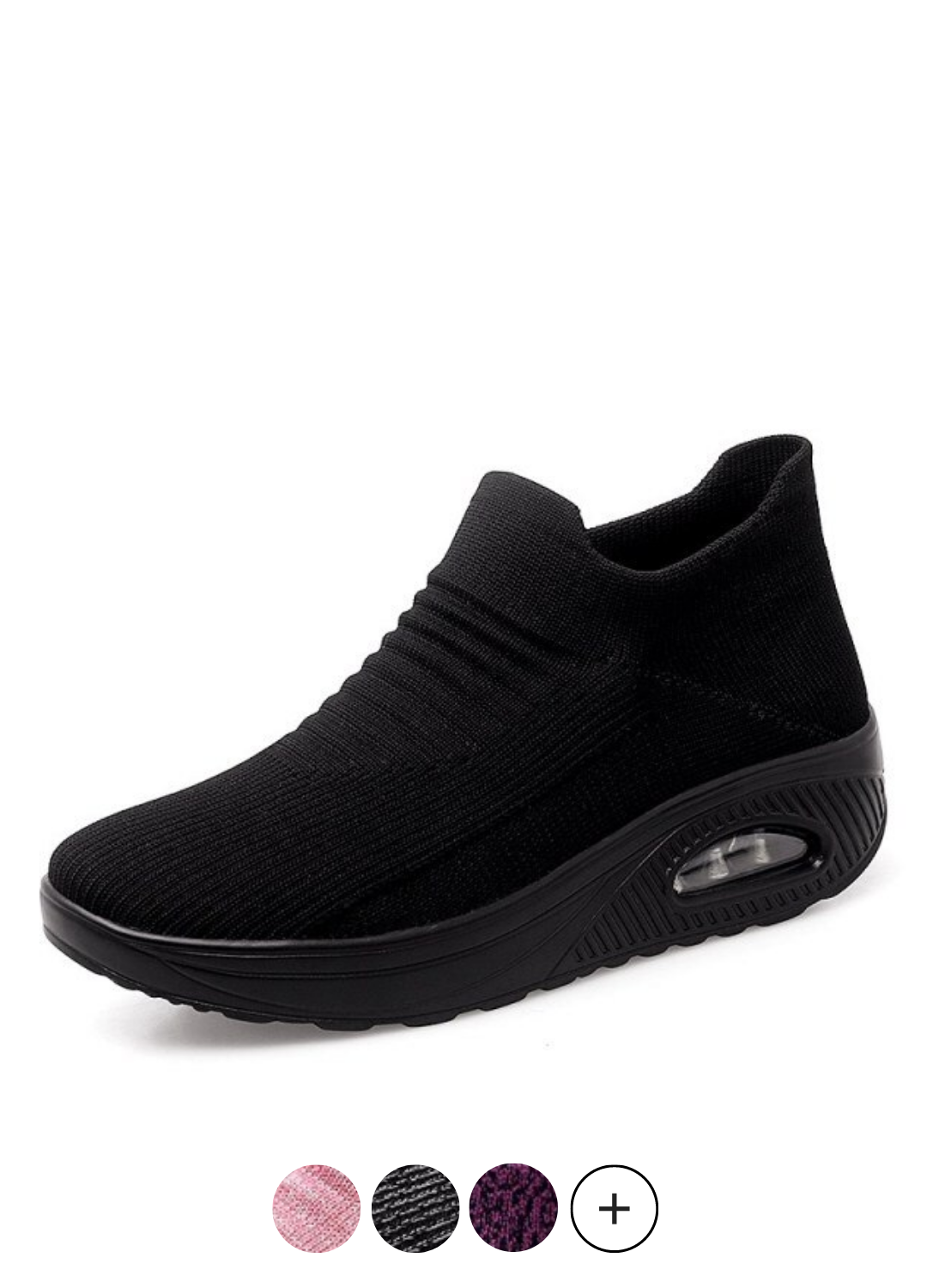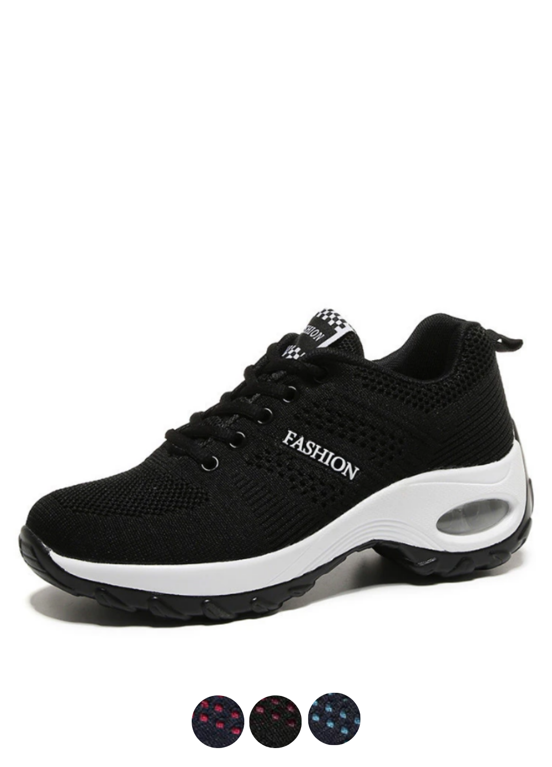 Alkin Women's Platform Sneakers Black Shoes Breathable Air Mesh