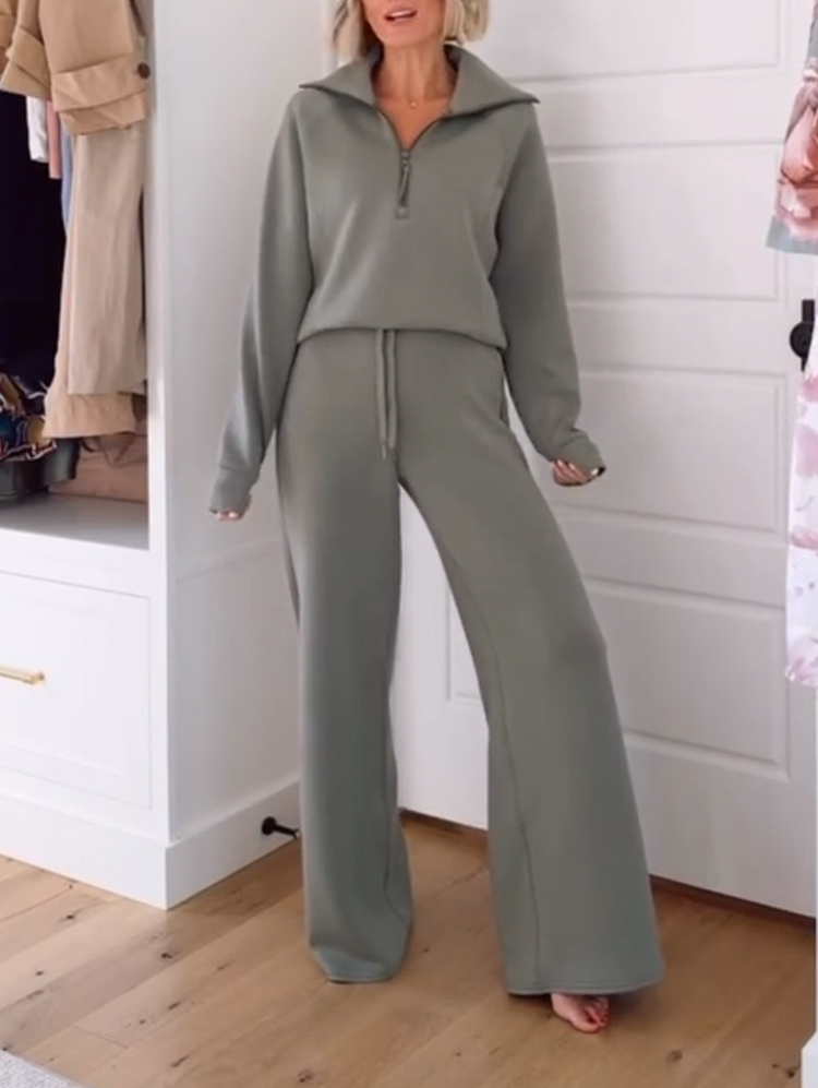 2025 Oversized Half Zip Sweatshirt Wide Leg Sweatpant Set Sweatsuit Tracksuit