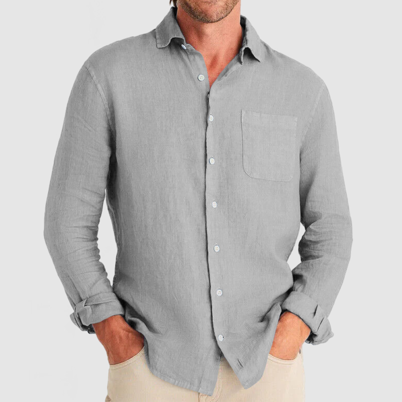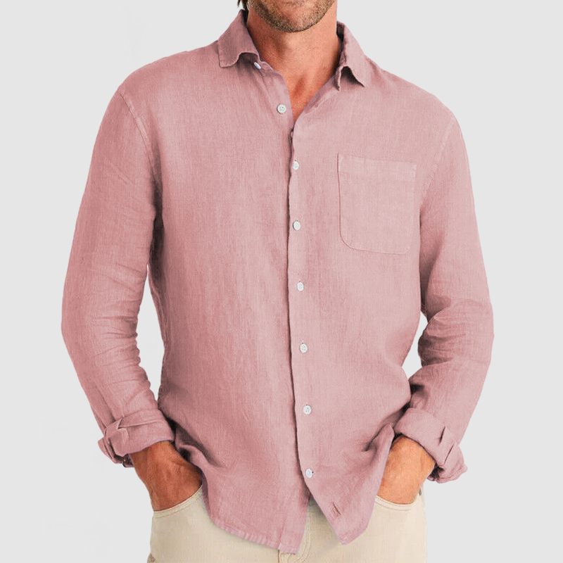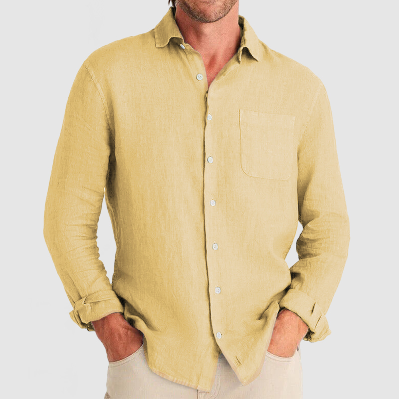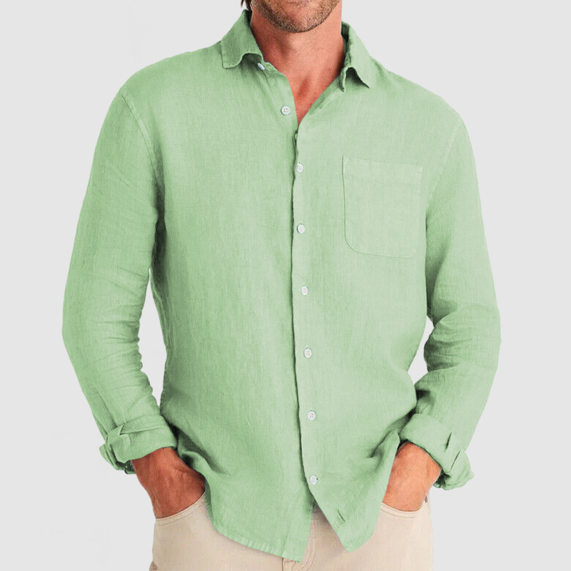 This shirt has a business-casual style element and is made from Cotton And Linen, which is extremely breathable. The sharp, tailored design of the collar and sleeves with sleek white buttons makes this shirt simple and uncluttered! This shirt goes well with any outfit, which will all be the finishing touch! Whether for outdoor sports, leisure activities or social gatherings, this shirt will keep you elegant and gentlemanly for a long time.