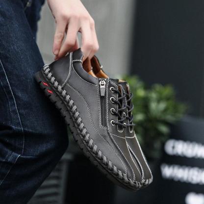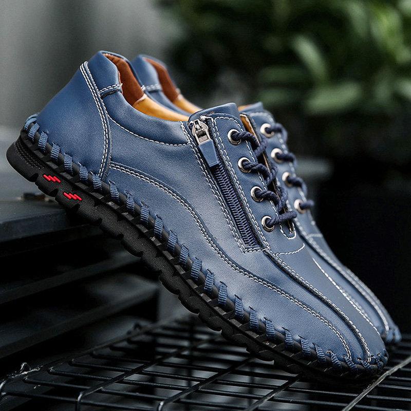 Large Size Men Hand Stitching Side Zipper Casual Leather Shoes