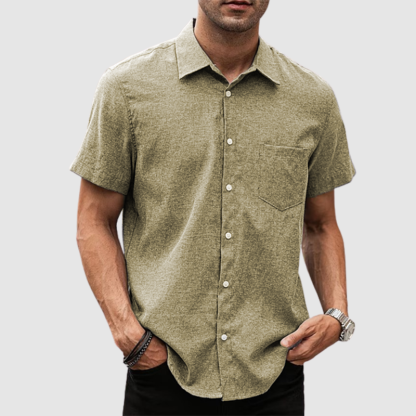 Men's lapel solid leather cotton thin casual summer shirt