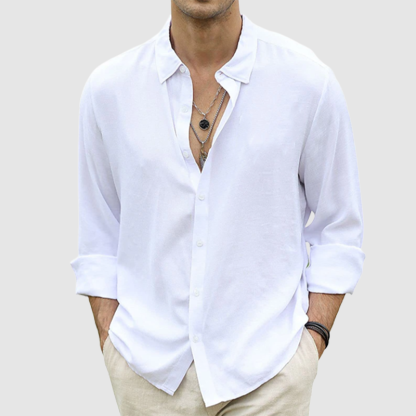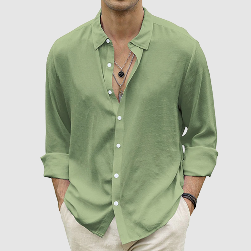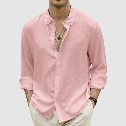 Men's summer casual button-up shirt long sleeve solid color holiday shirt