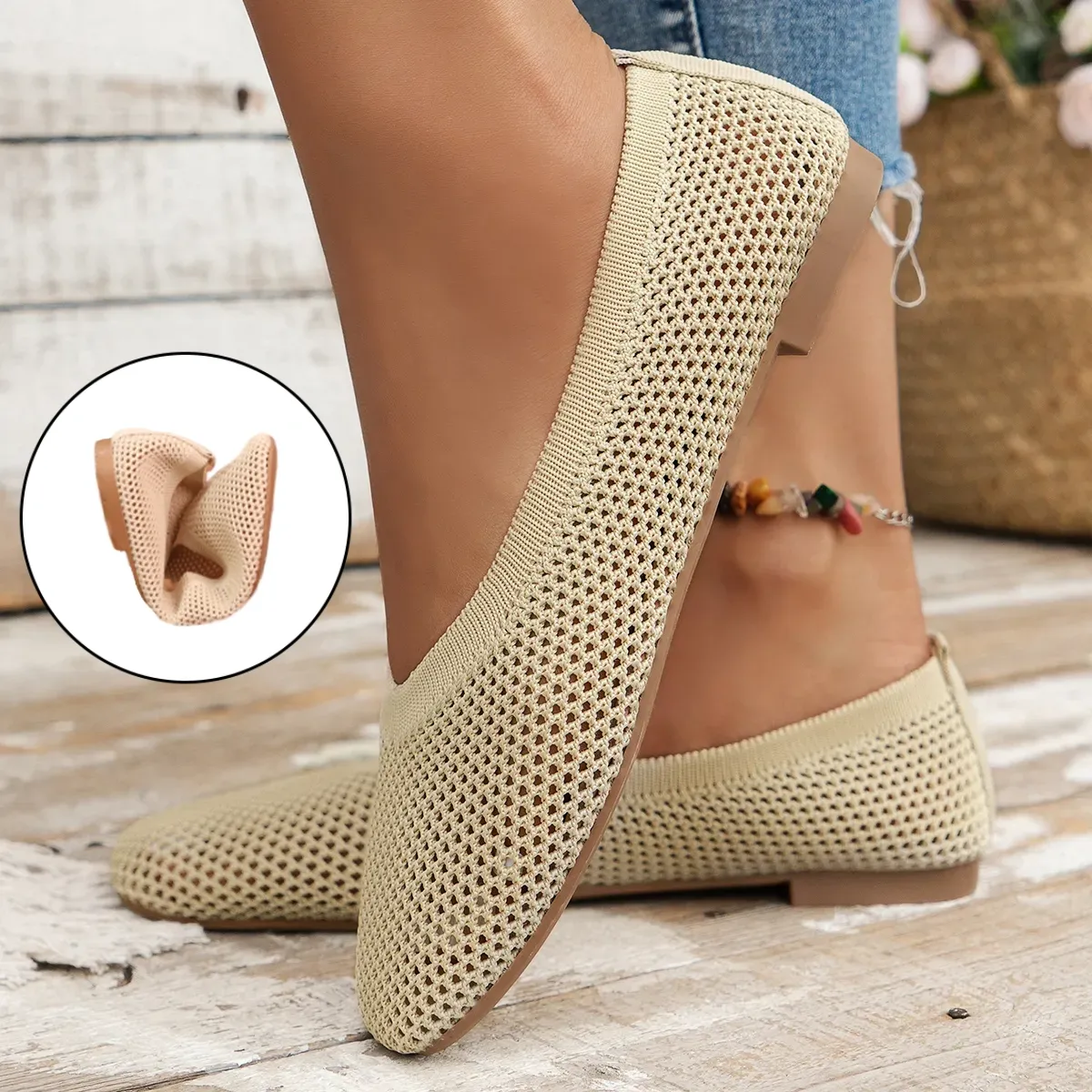 Are you fed up with flat shoes that cramp your toes? Traditional flat shoes often lack the space for your toes to spread naturally, leading to discomfort and irritation. They also tend to have thin soles that offer little cushioning, making long walks a painful ordeal. All of this can lead to serious foot problems like pinched nerves, corns, long-term joint damage, and hallux valgus.