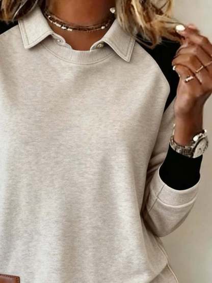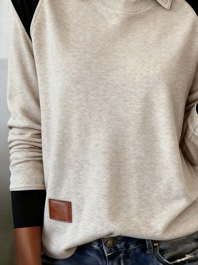Women'S Casual Contrast Color Long-Sleeved Sweatshirt