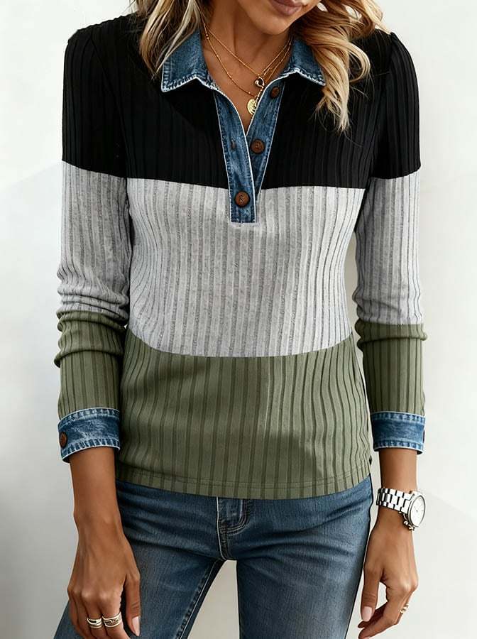 Women'S Casual Loose Contrast Color Stitching Top