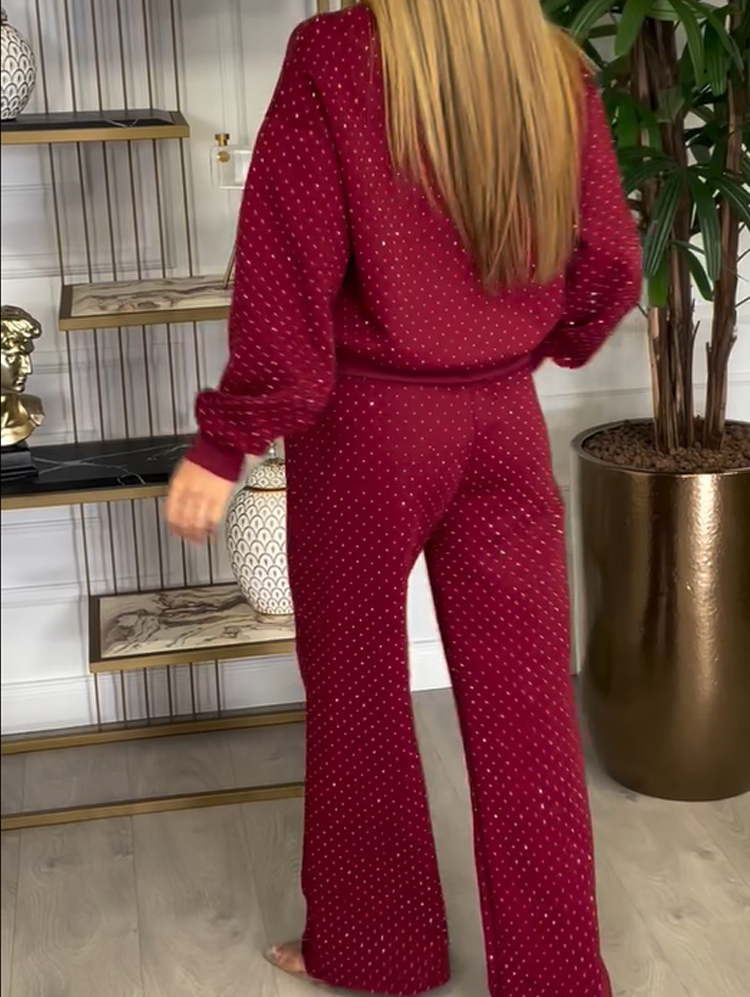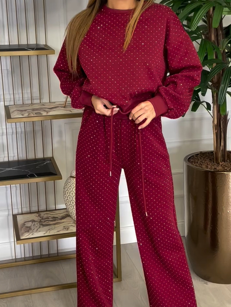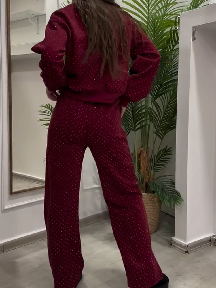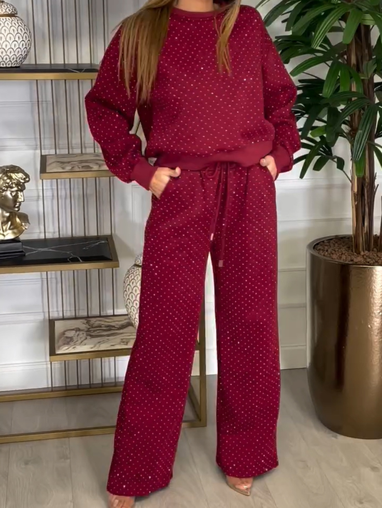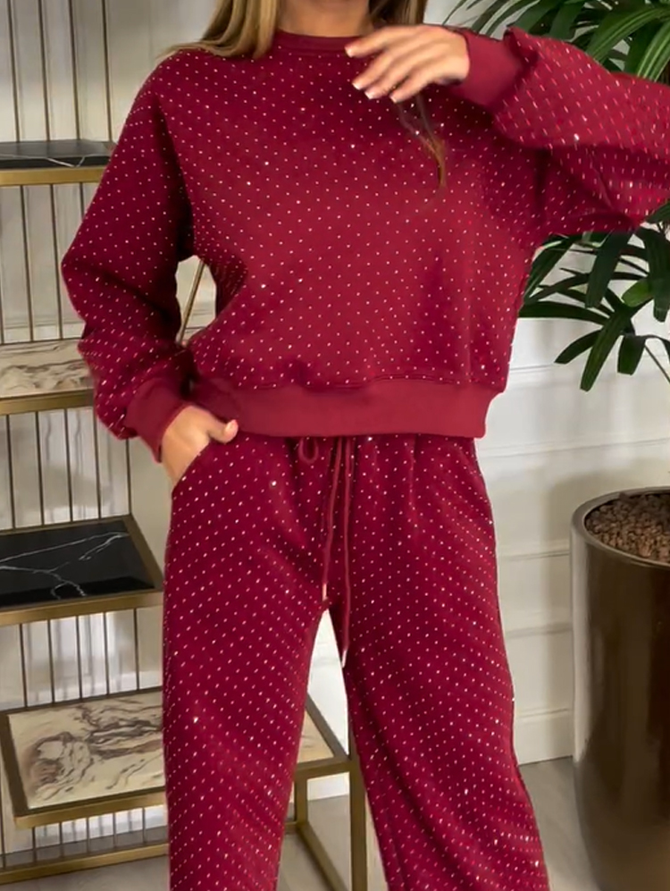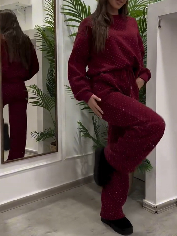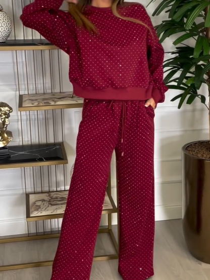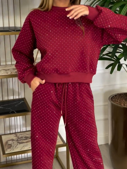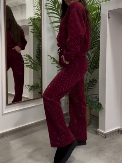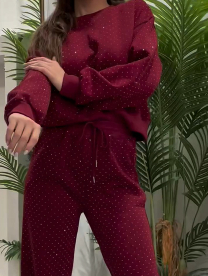 Women's Casual Round Neck Diamond Hooded Two Piece Suit