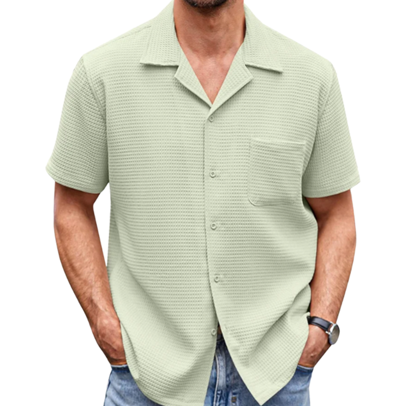 Men's Cotton Linen Casual Button Down Short Sleeve Shirt