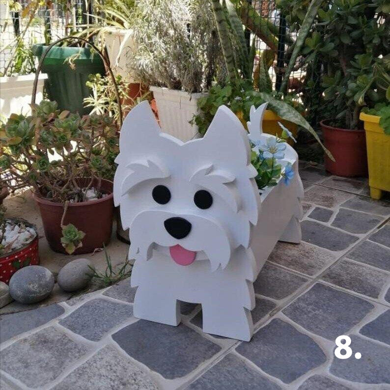 Pick your favorite planter: Enjoy the charm and humor of this dog-shaped planter. Available in the design of most dog breeds, you're sure to find the perfect planter for your garden!