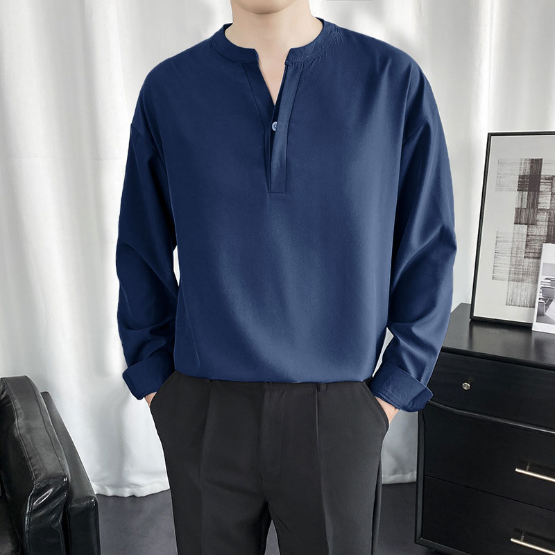 Gentlemen's Casual Stand Collar Long Sleeve Shirt