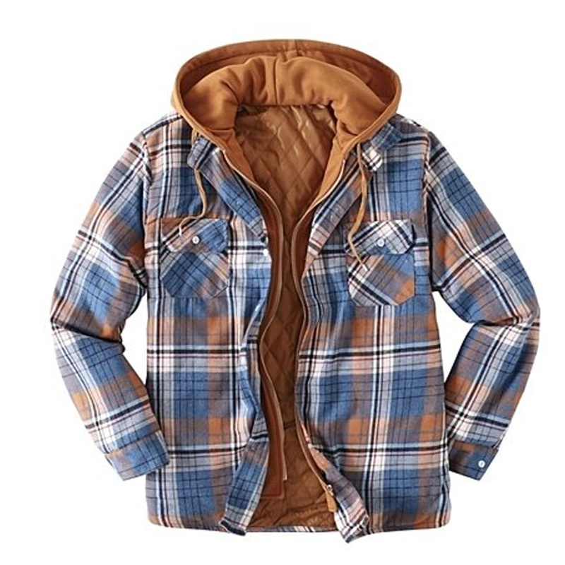 Hooded Casual Plaid Pocket Long Sleeve Jacket Shirt