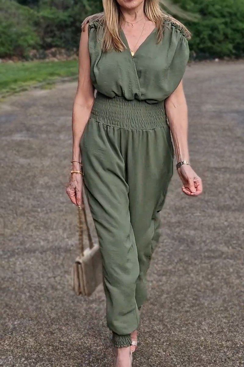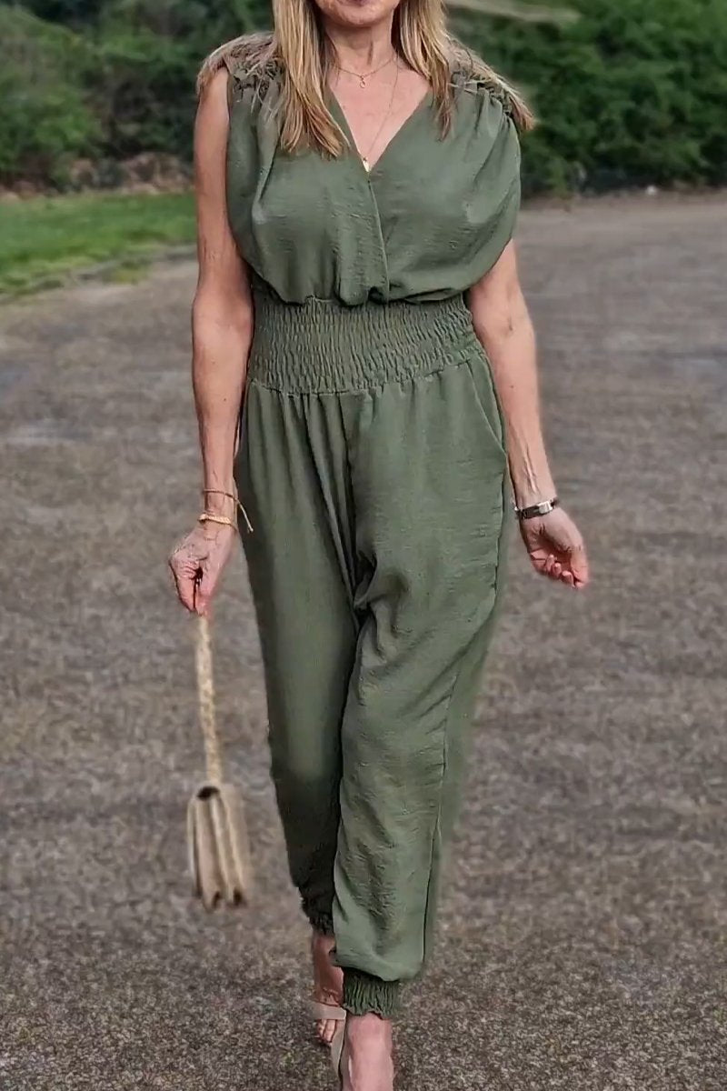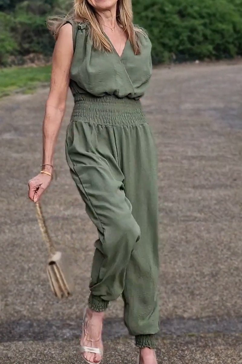 Women's casual V-neck waist jumpsuit