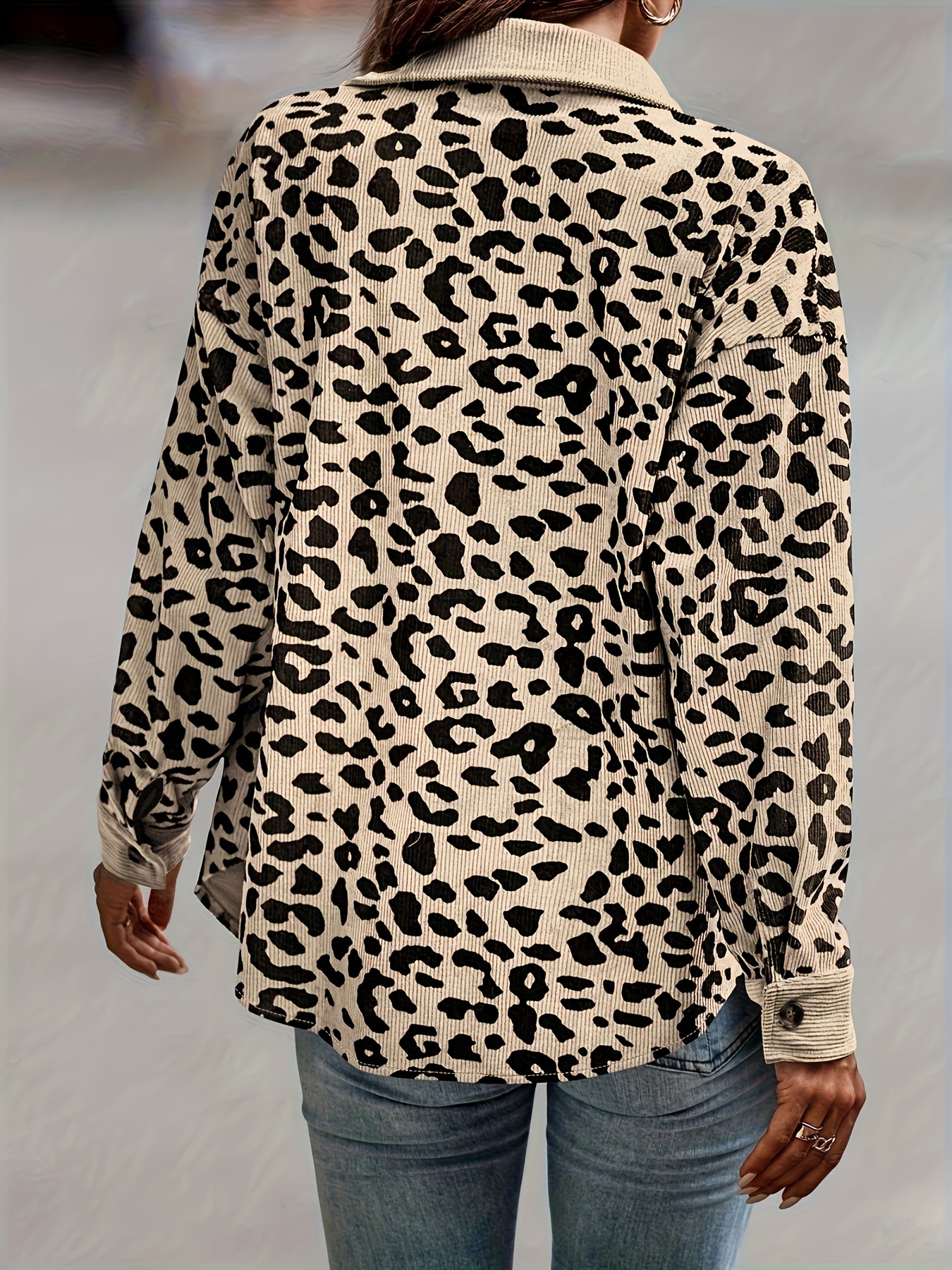 Women's Leopard Print Long Sleeve Lapel Collar Button Coat
