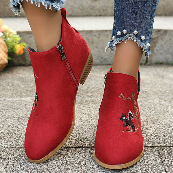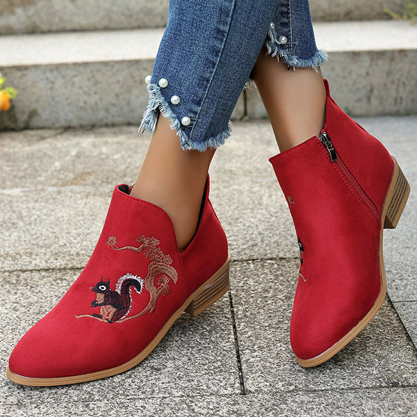 LAST DAY 50% OFF-Women's Pointed Toe Embroidered Ankle Boots