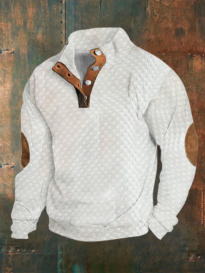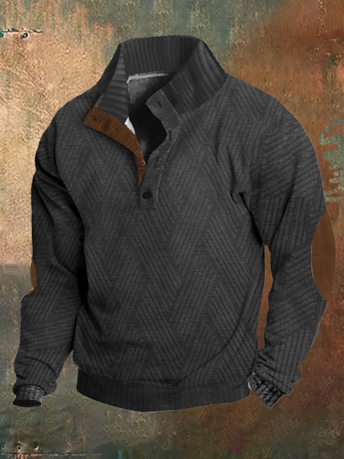 Men's Texture Print Standing Collar Button Casual Sweatshirt