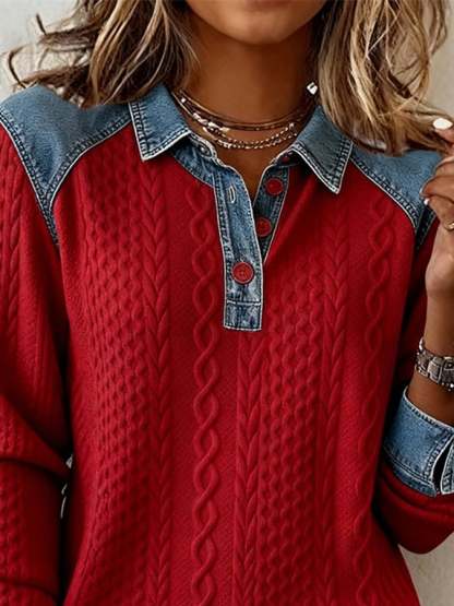 🔥 Women's Solid Color V Neck Long Sleeve Casual Loose Knit Pullover