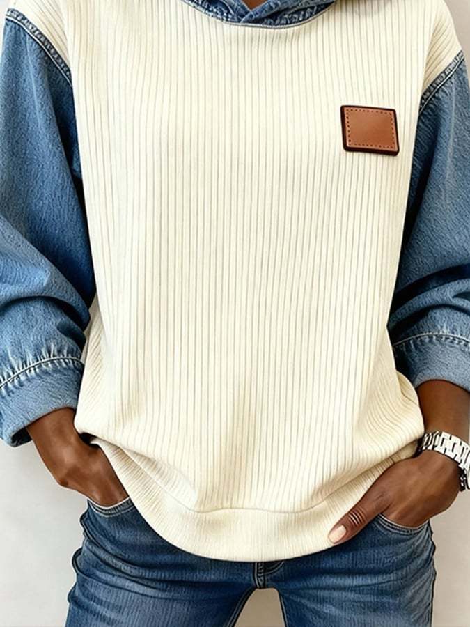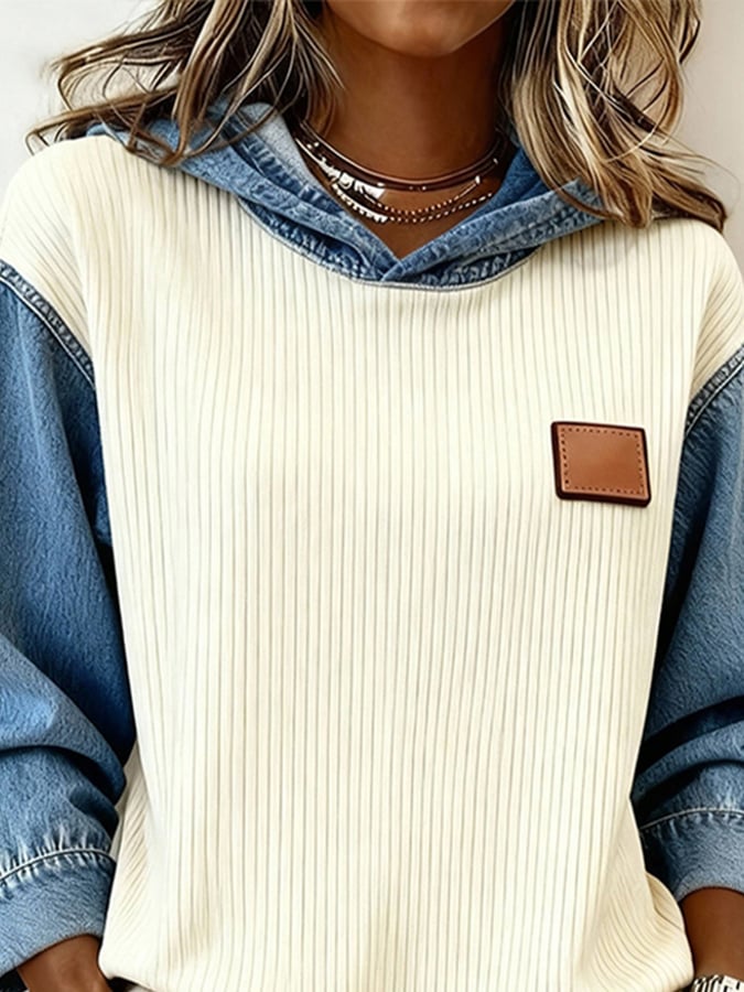 Women's Casual Hooded Color Block Sweatshirt
