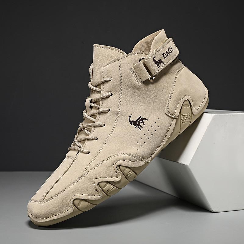 Men Cow Leather Non Slip Hand Stitching Soft Sole Casual Outdoor Boots