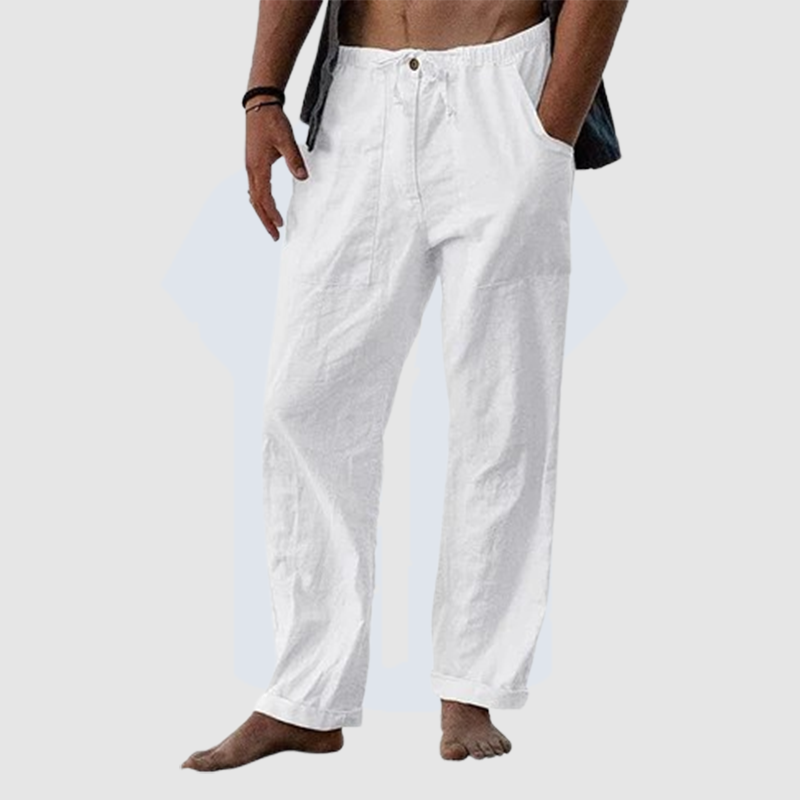 Men's summer cool pure linen wide leg pants thin pure color loose tight rope casual loose pants
