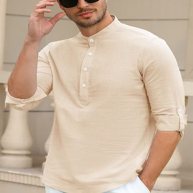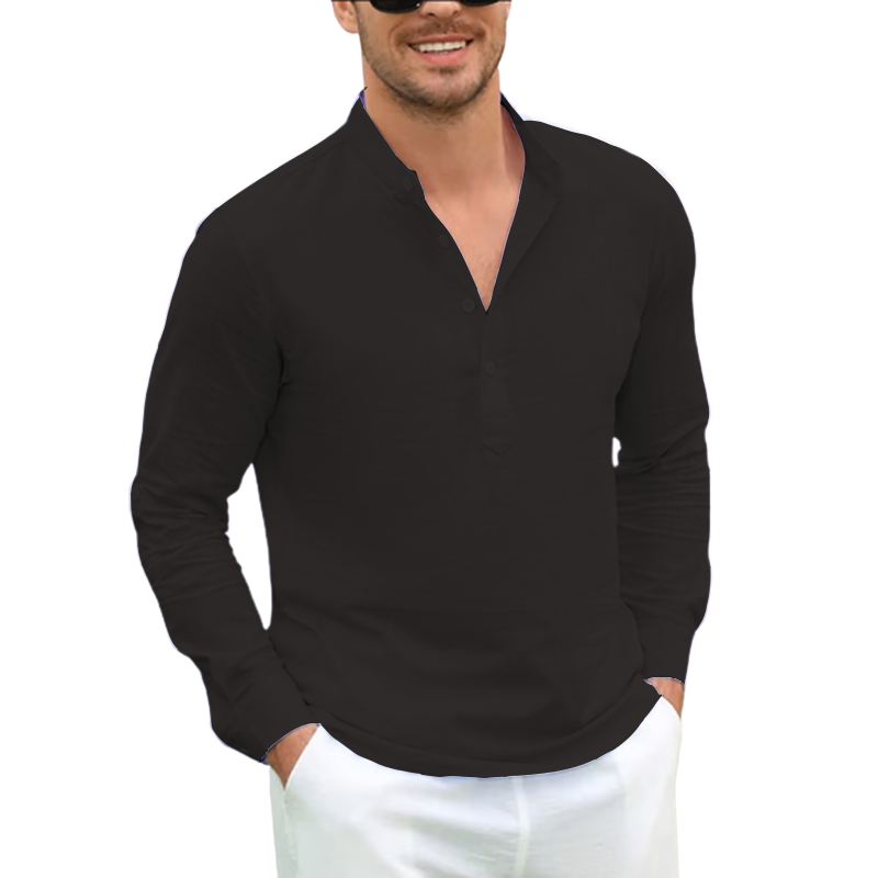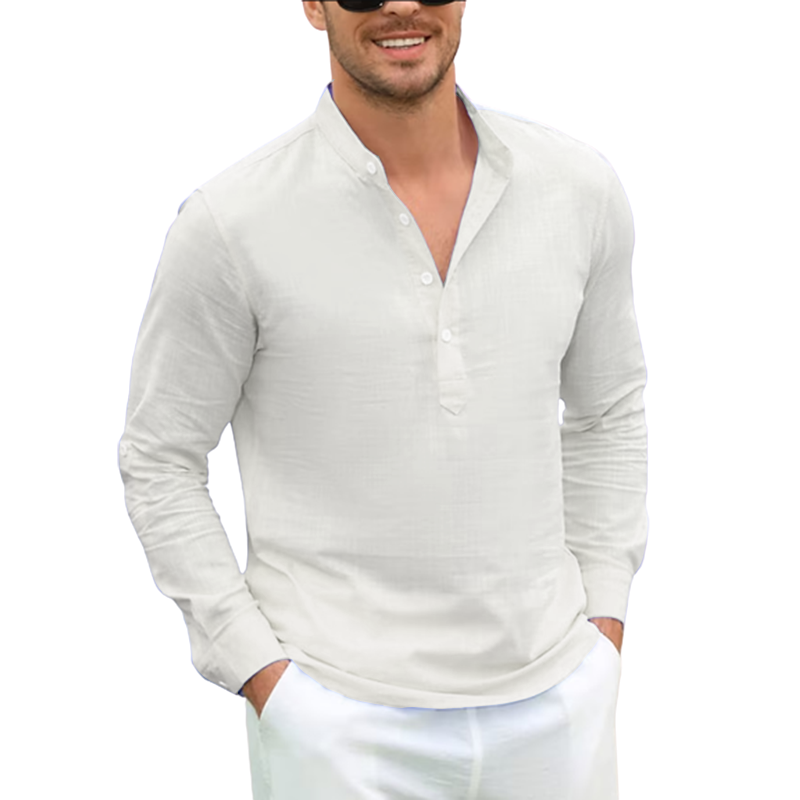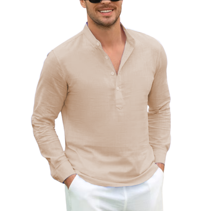 Current season men's cotton linen casual long-sleeved shirt