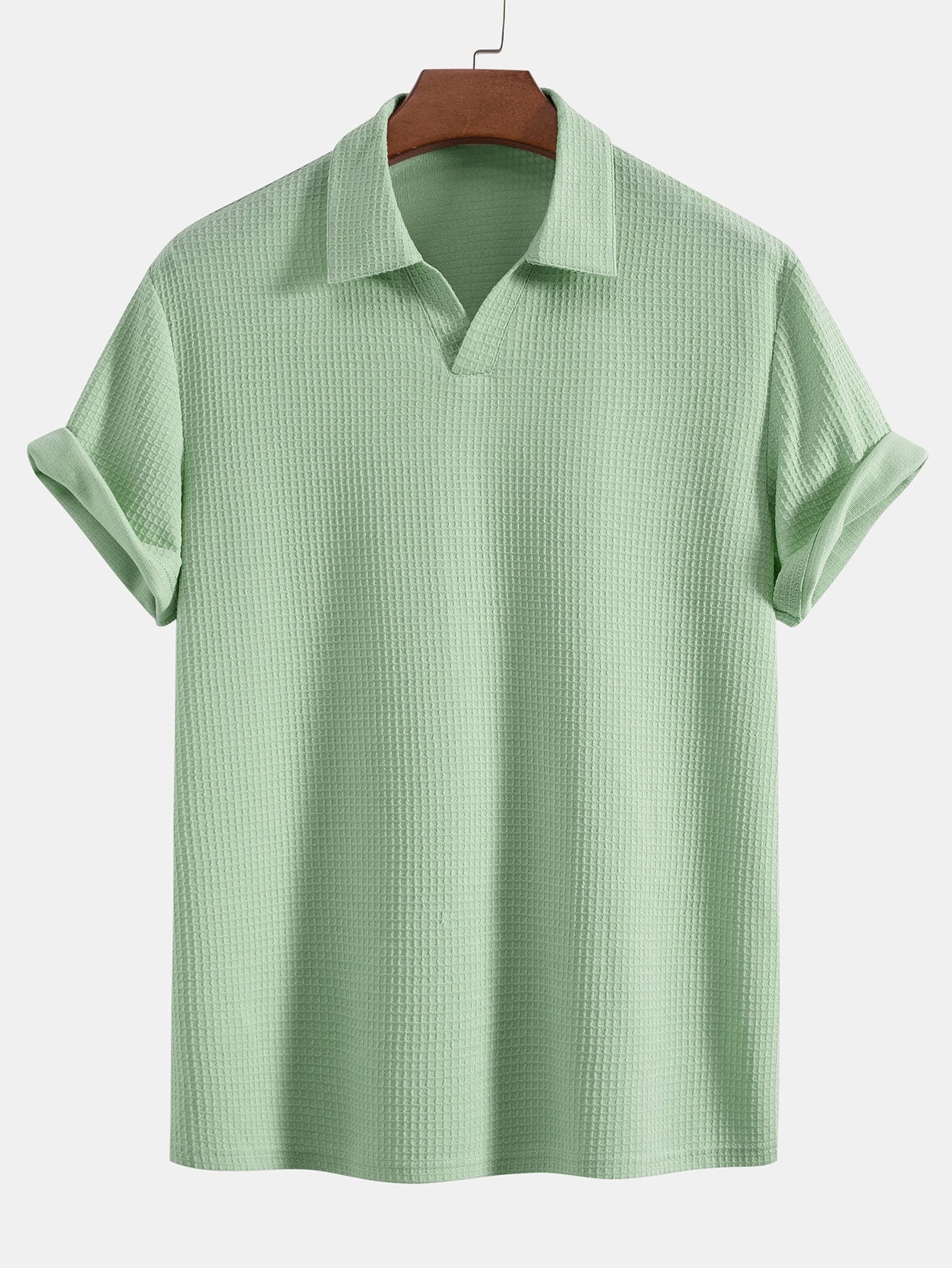 Loose Short Sleeves Buttoned Solid Color V-Neck T-Shirts Tops