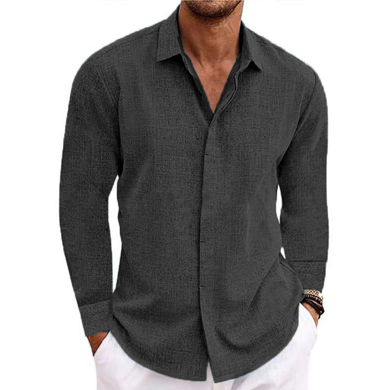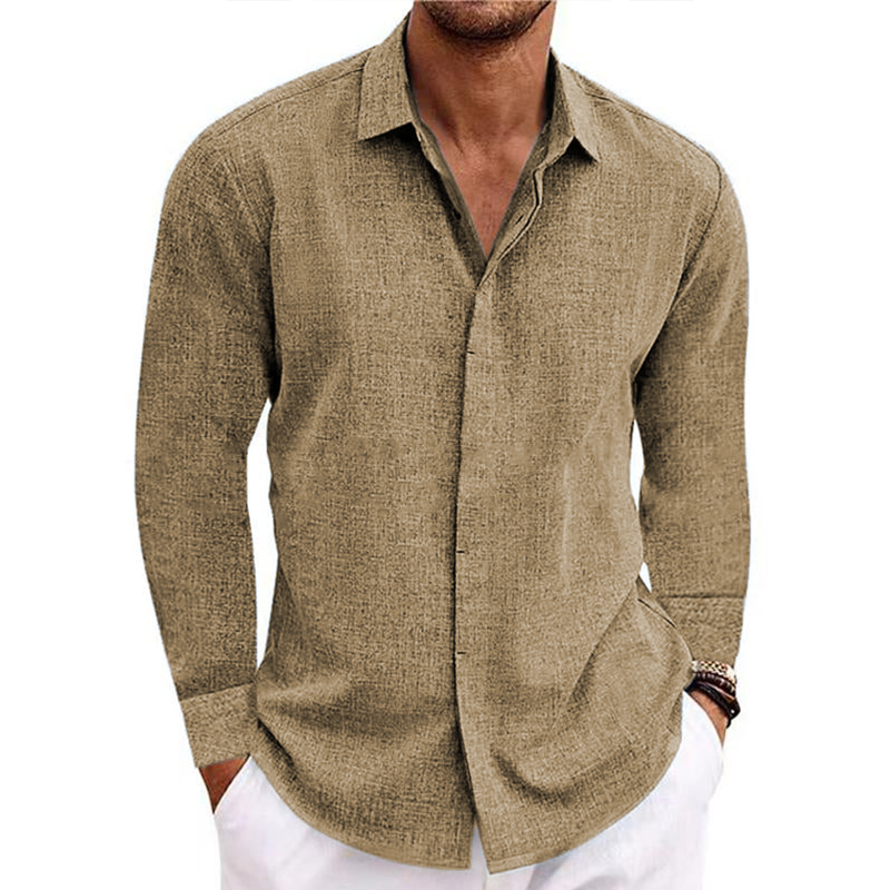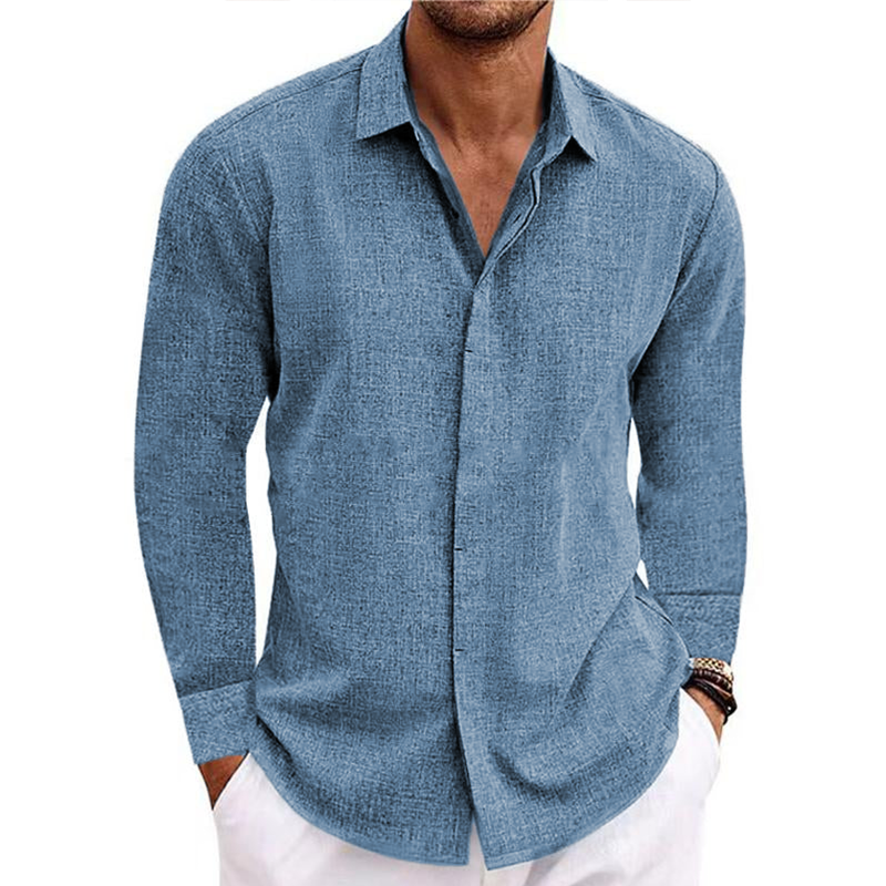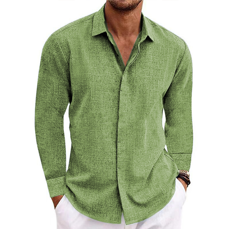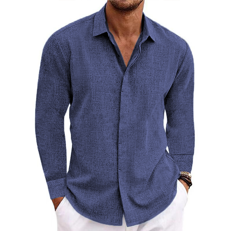Men's button v-collar casual cotton linen long-sleeved shirt