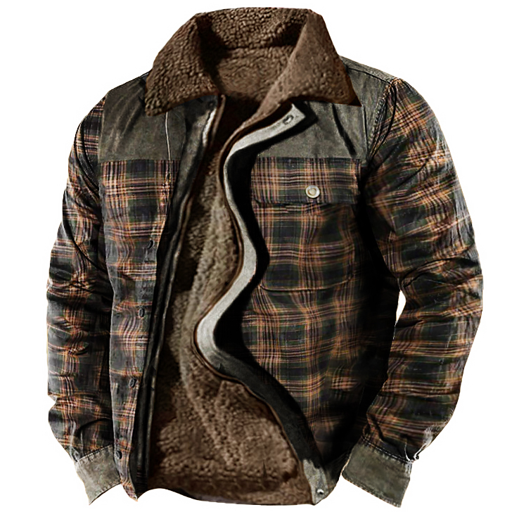 Men's Retro Check Pattern Stitching Fleece Warm Wanderer Jacket
