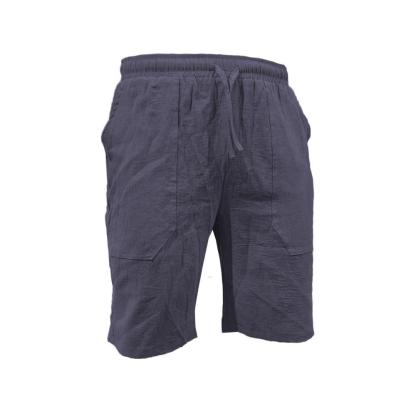 Men's summer cotton linen shorts draw rope elastic waist straight legs solid color breathable five minutes casual pants