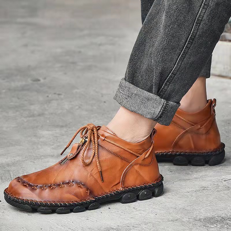 PEDATICVC™ Mens Hand Stitching Non-Slip Soft Sole Genuine Leather Ankle Chukka Boots