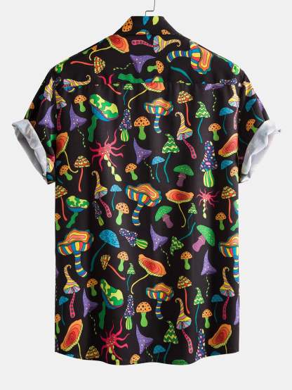 Psychedelic Mushroom Print Button Up Shirt