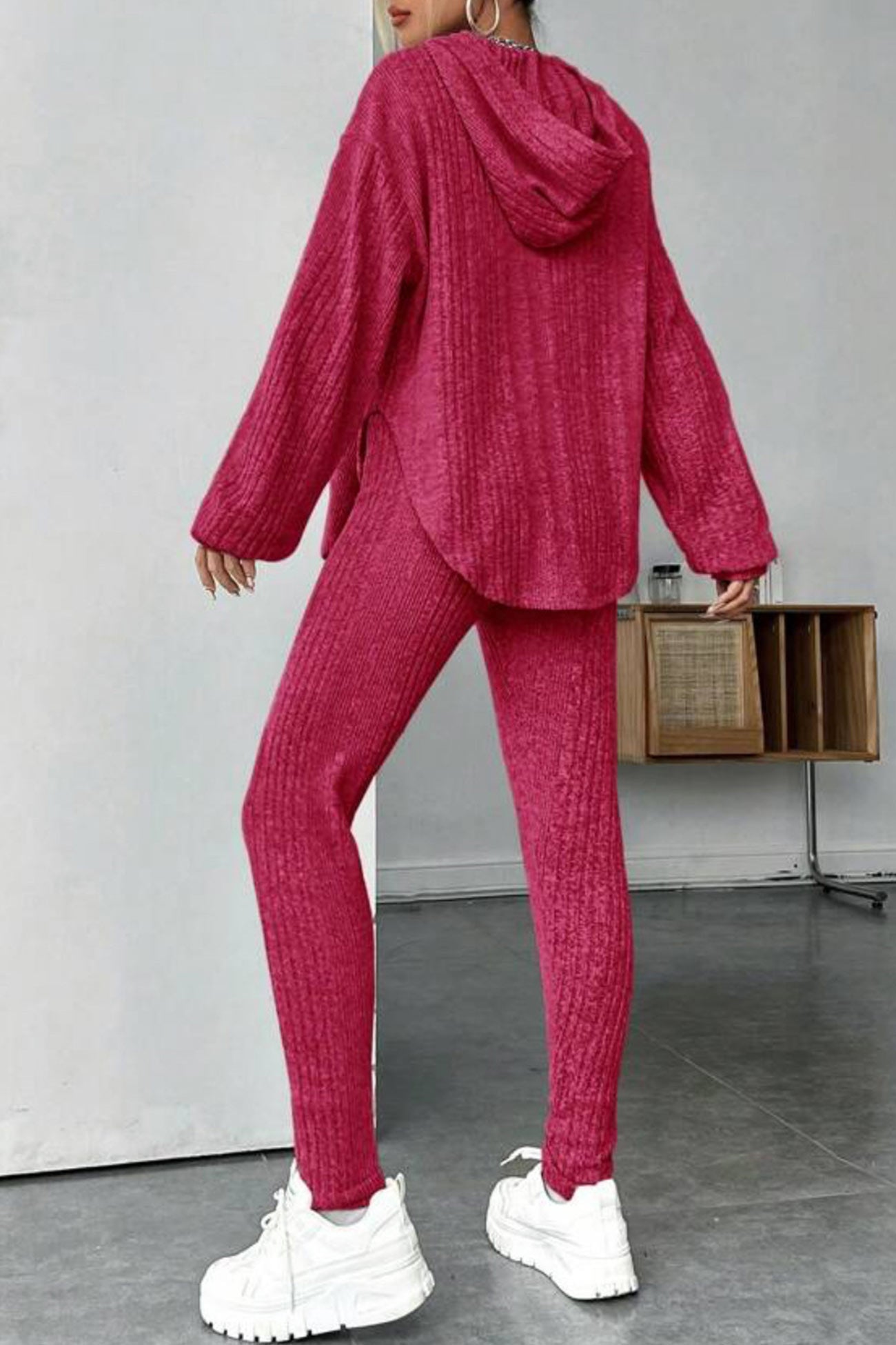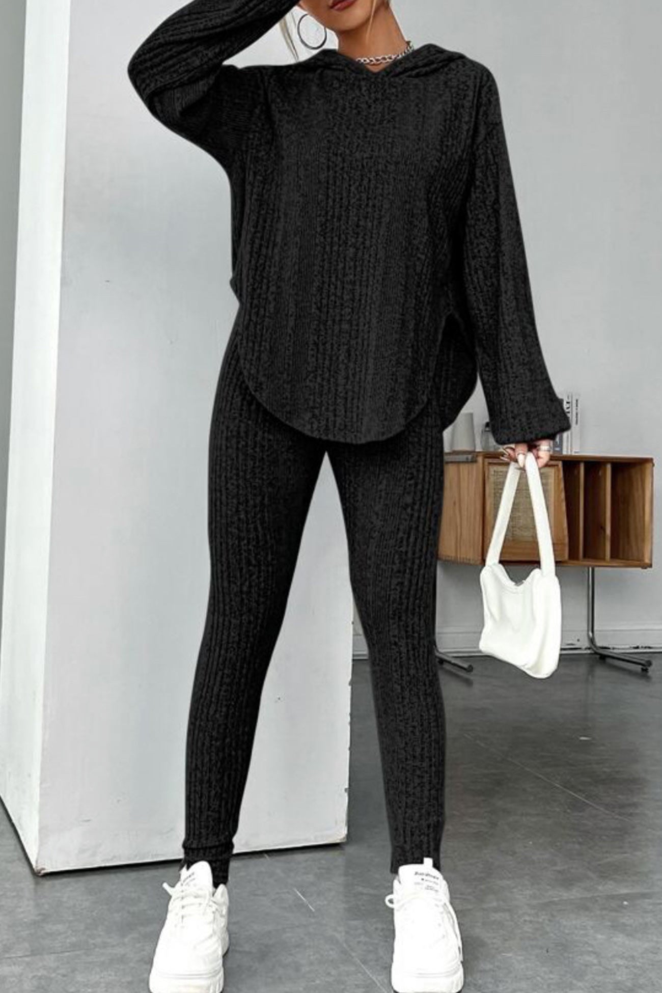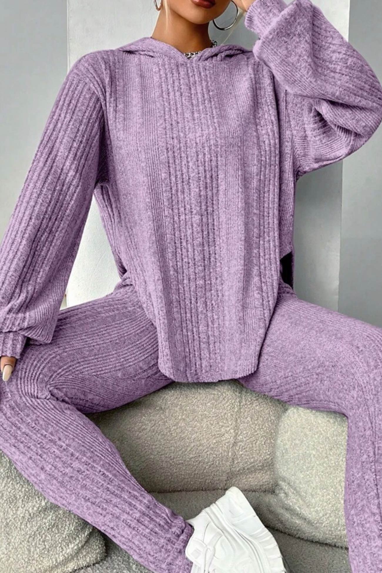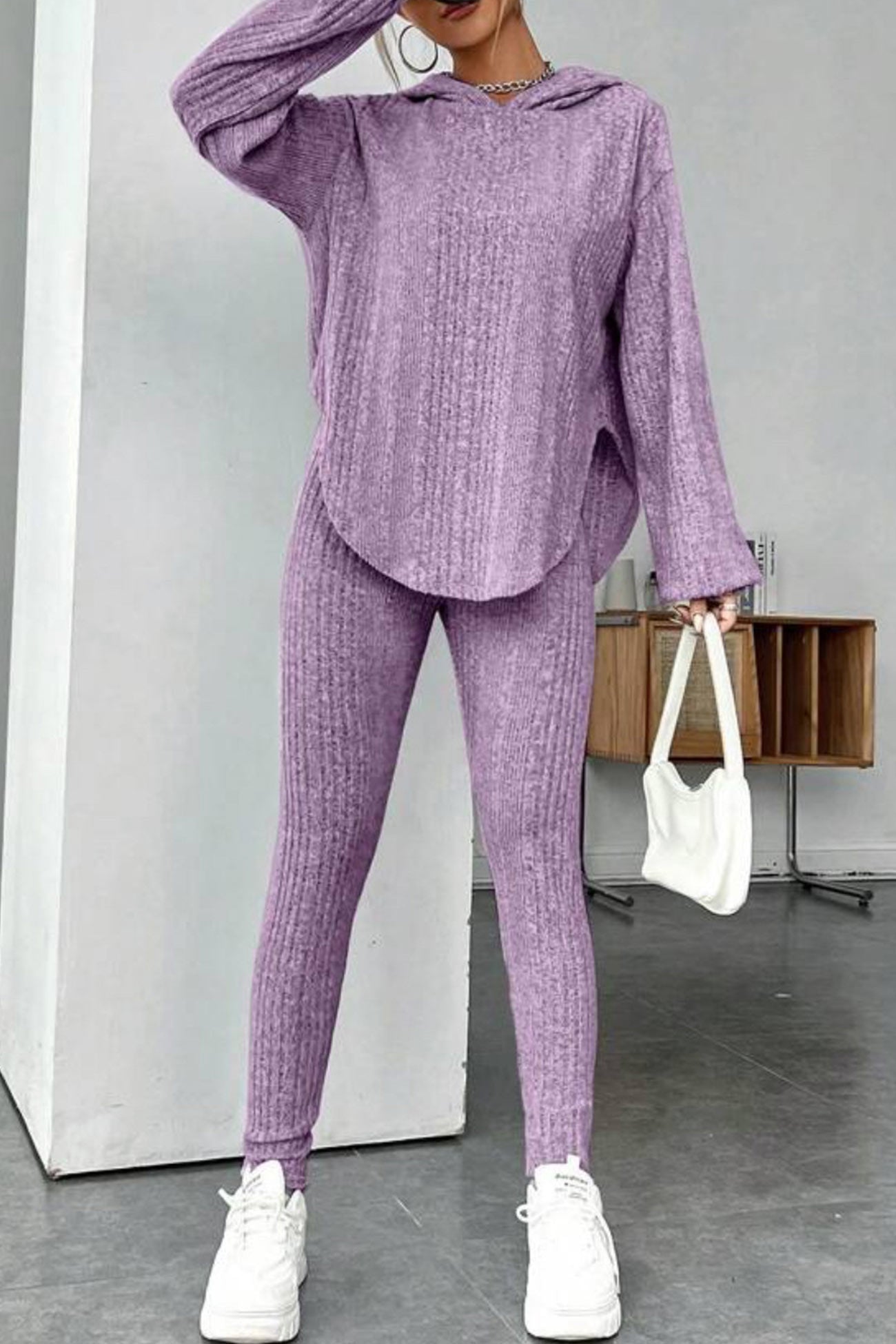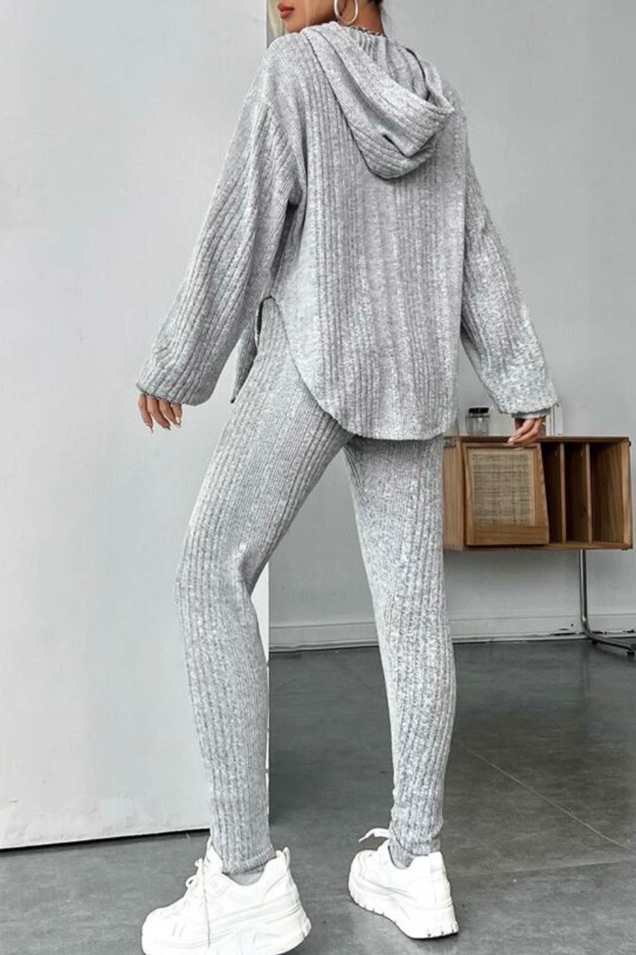 Ribbed Slit Curved Hem Hoodie Legging Set