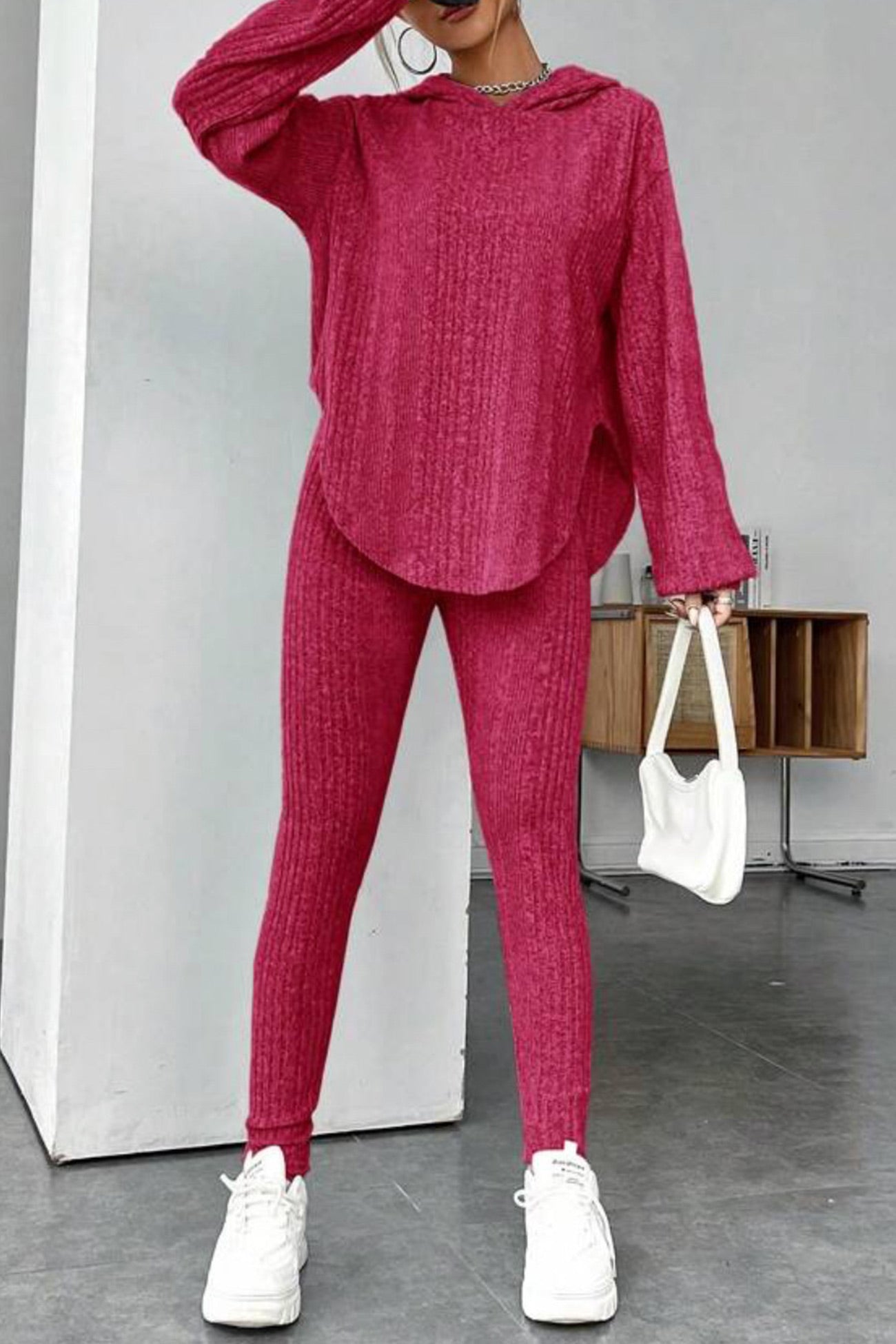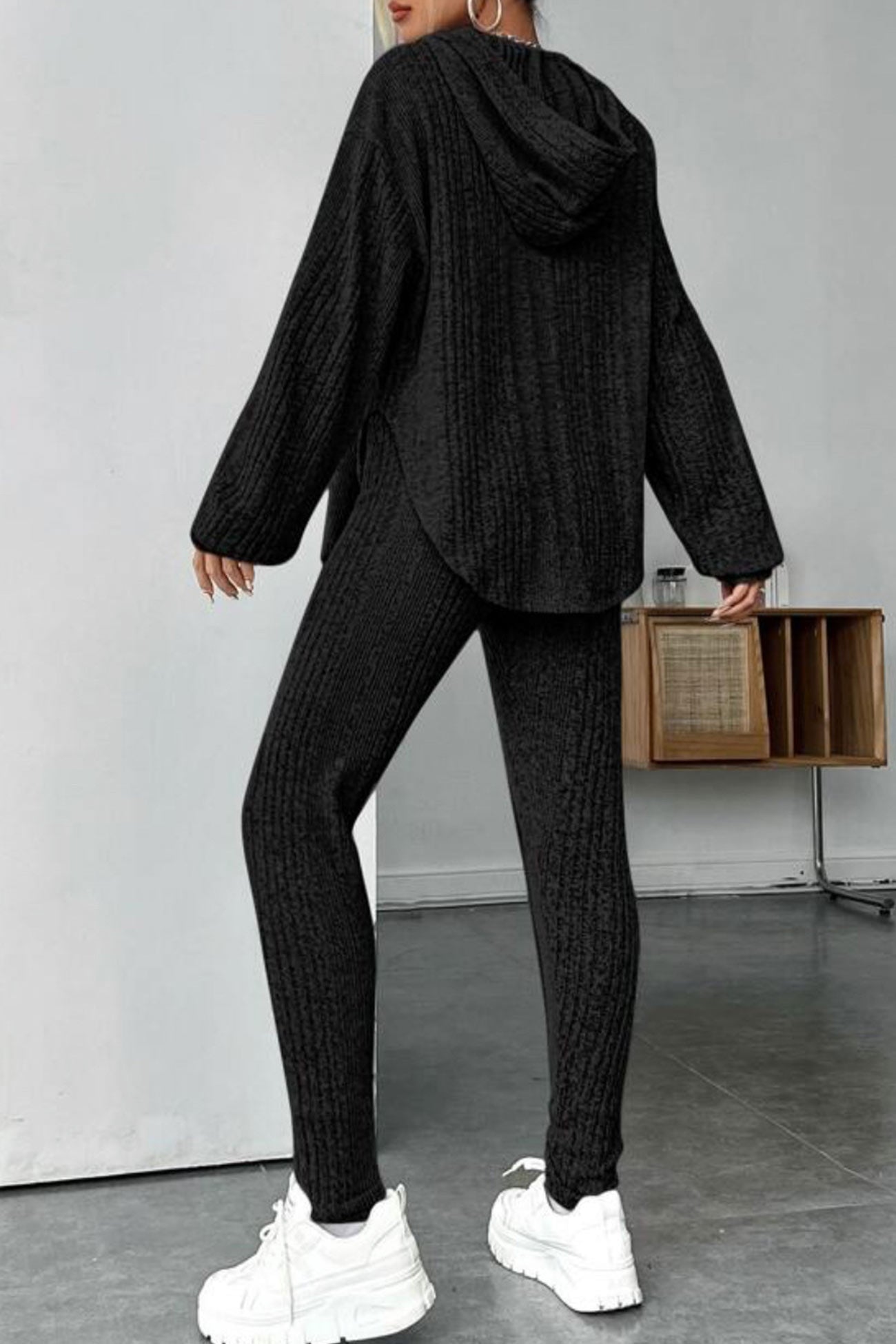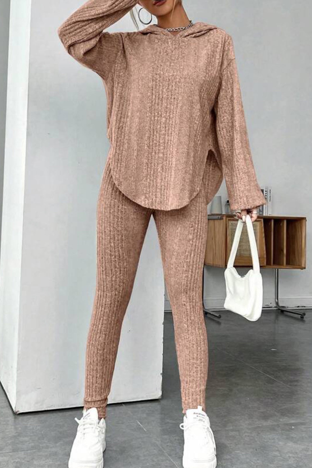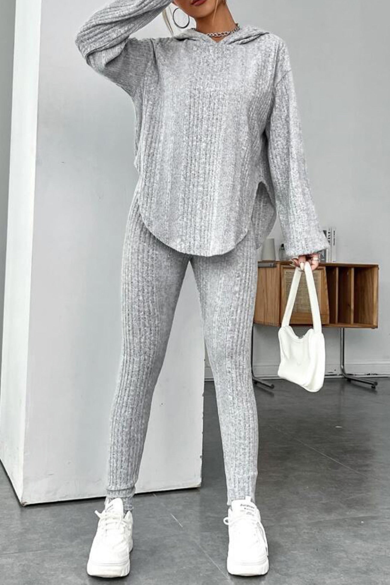 Ribbed Slit Curved Hem Hoodie Legging Set