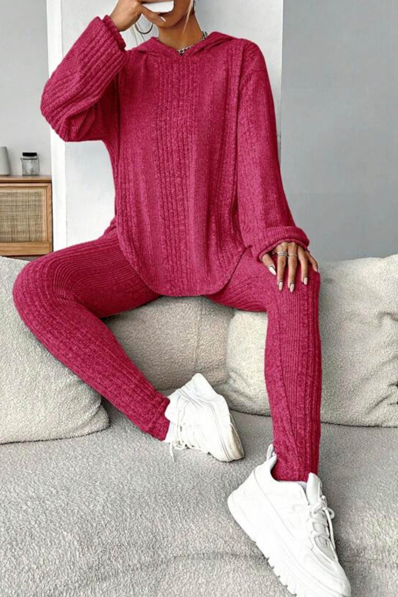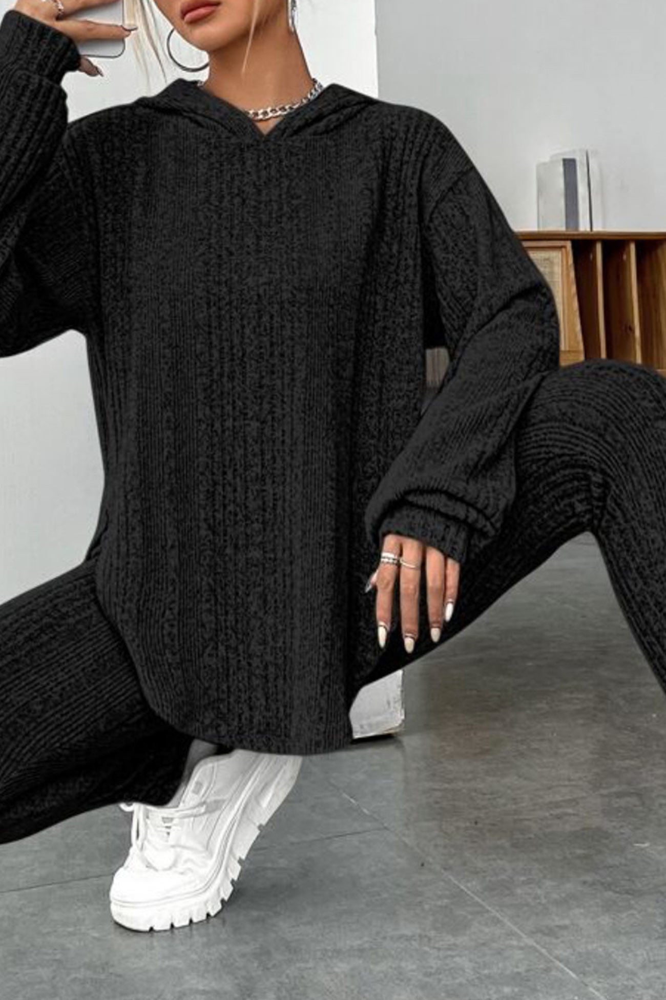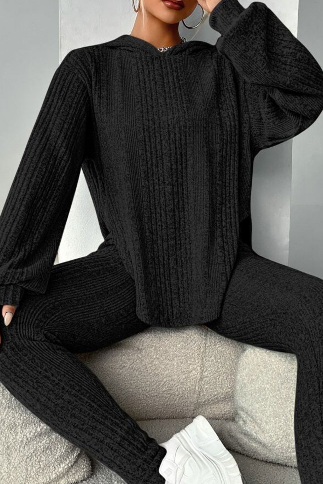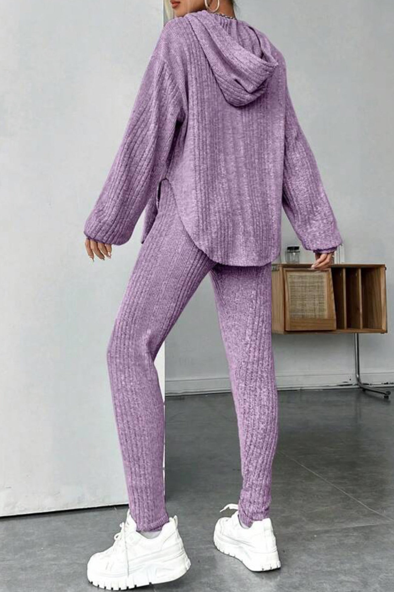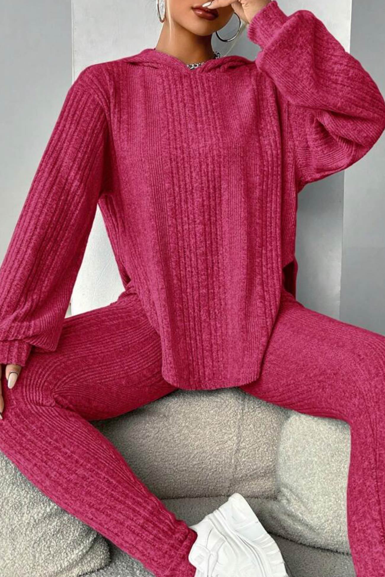 Ribbed Slit Curved Hem Hoodie Legging Set