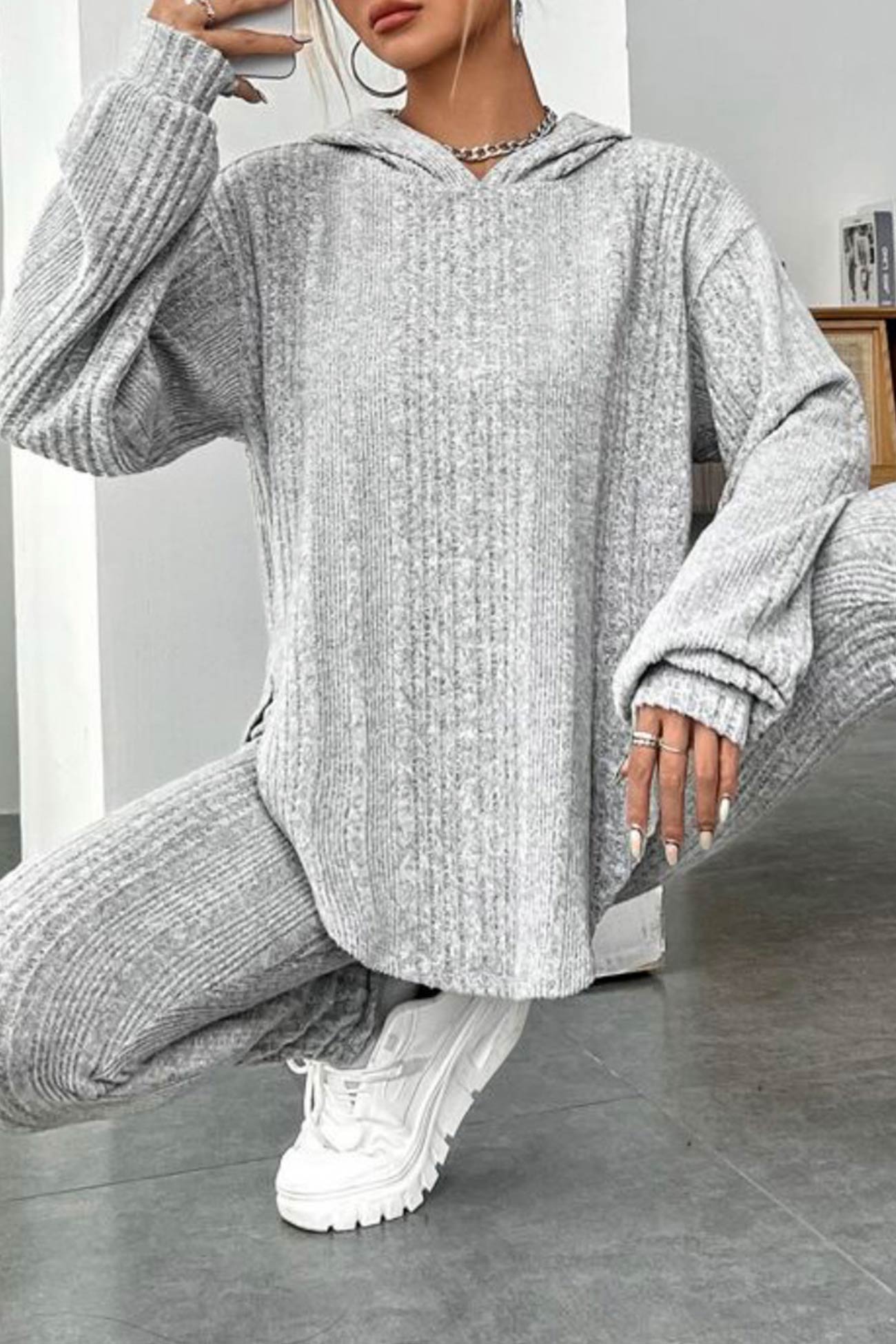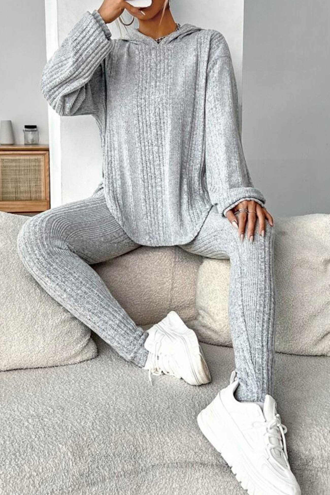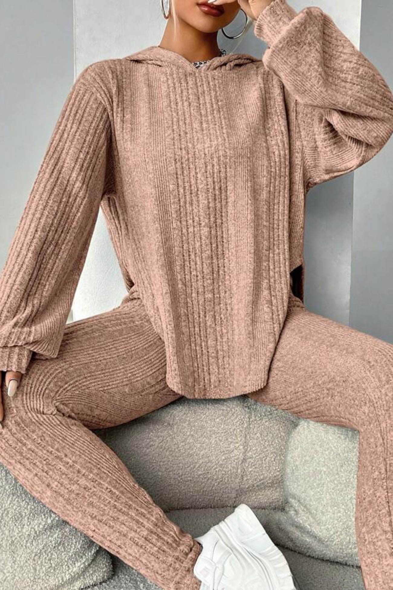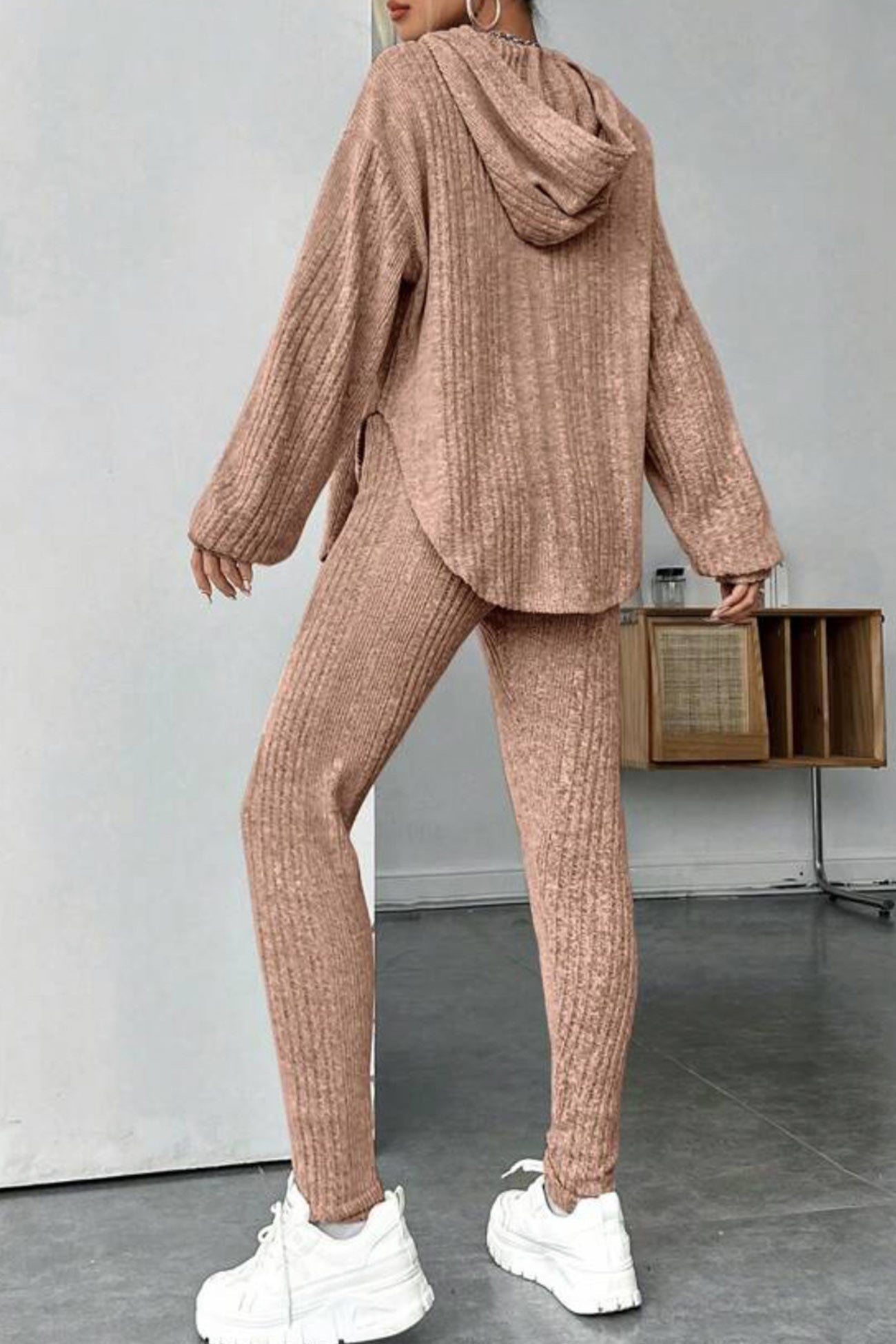 Ribbed Slit Curved Hem Hoodie Legging Set