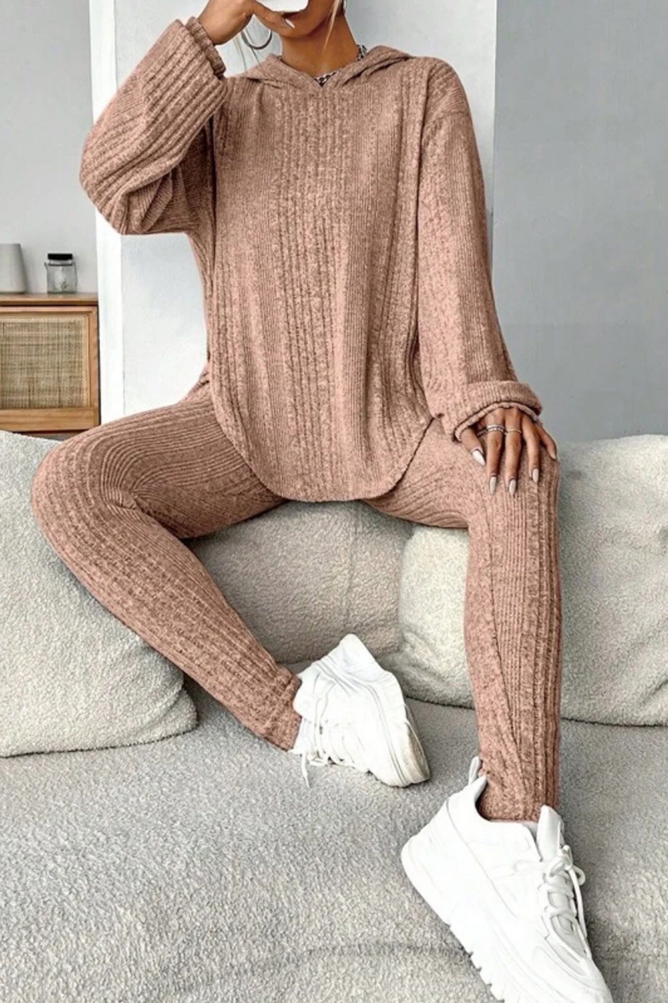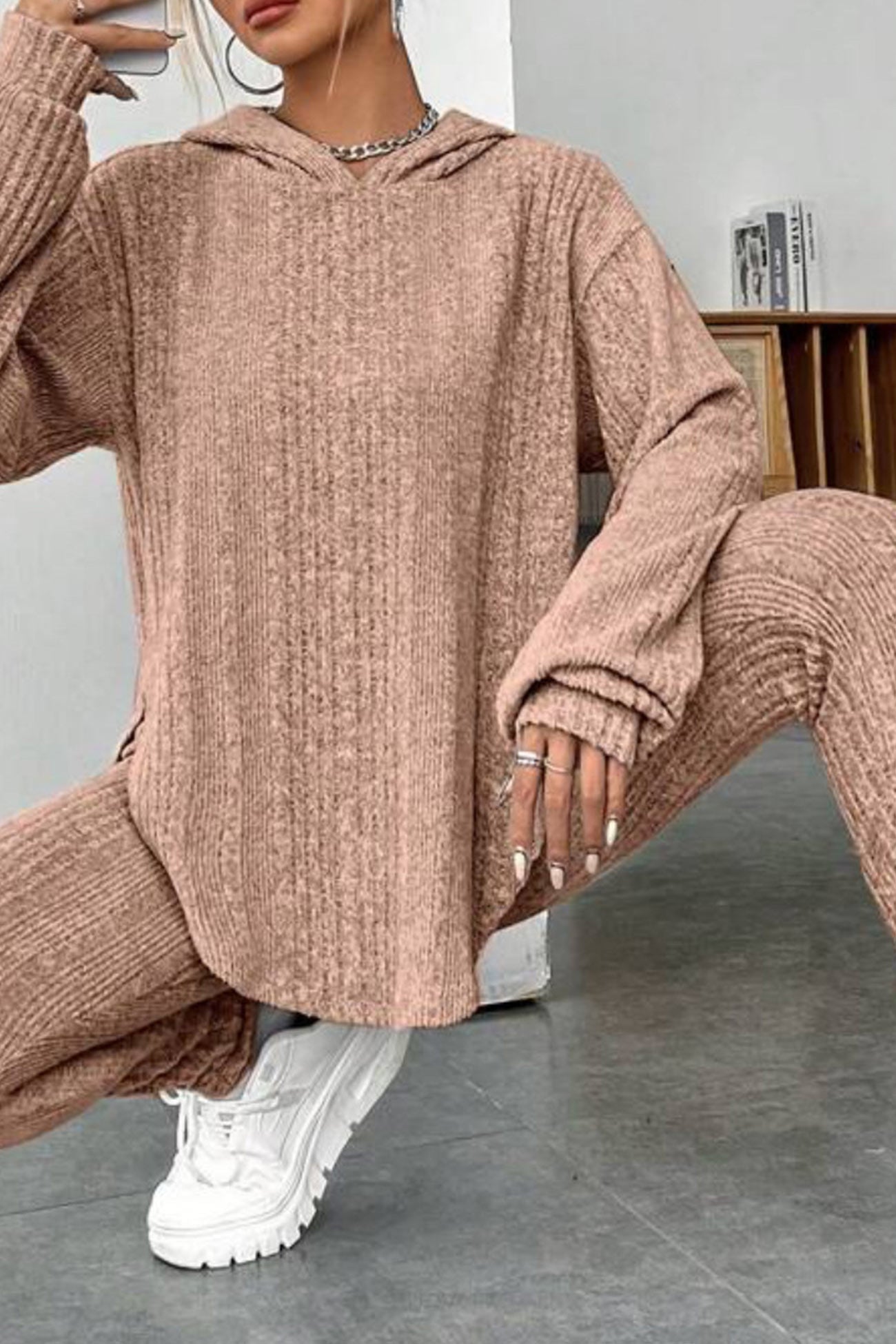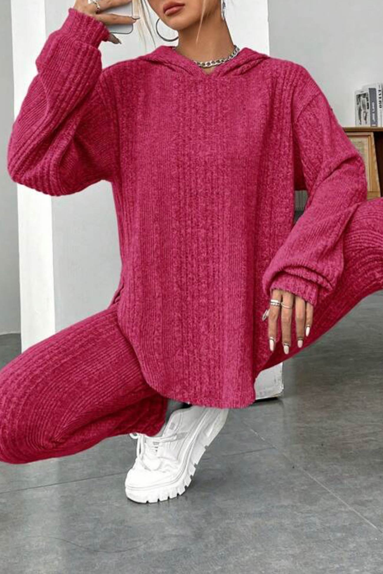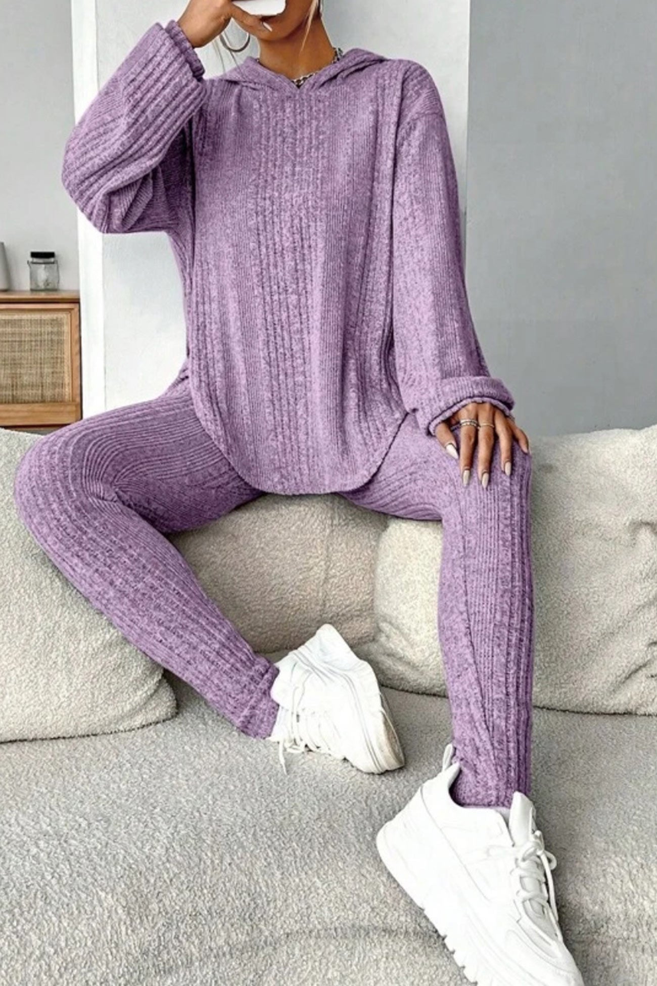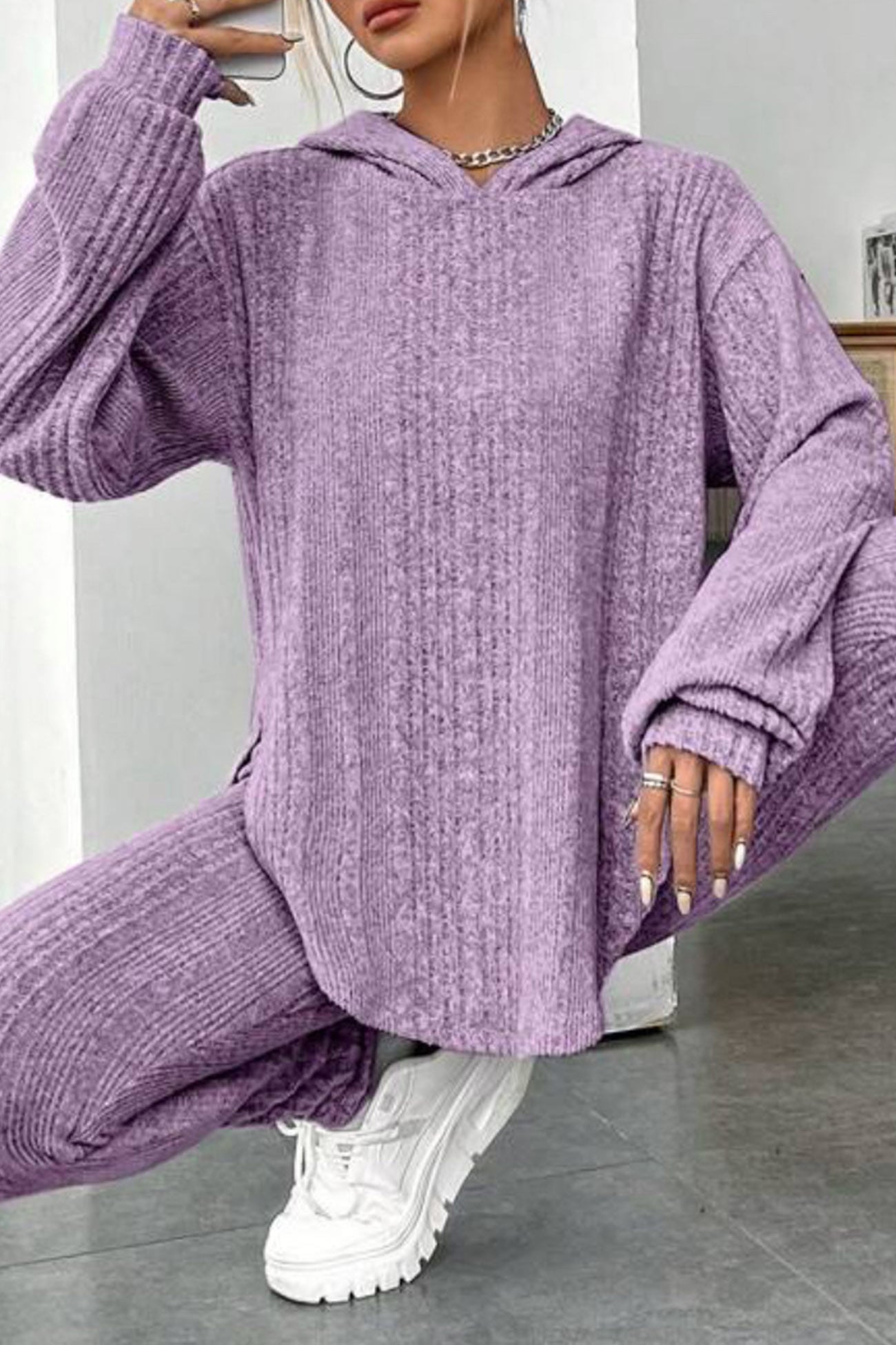 Ribbed Slit Curved Hem Hoodie Legging Set