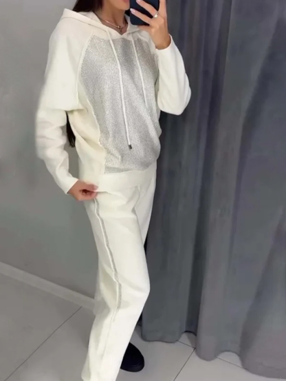 ACRYLIC SHIN EMBELLISHMENT: Unique acrylic rhinestone embellishments add a touch of style, making this sweatshirt casual and eye-catching, suitable for various occasions.