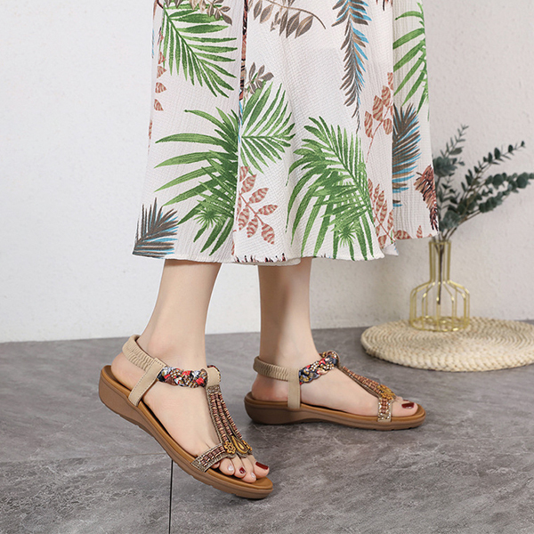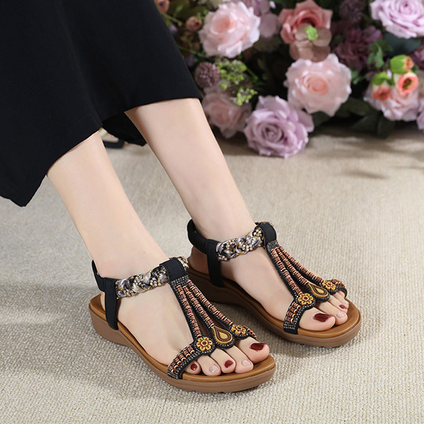 LAST DAY 70% OFF-Womens Rhinestone Beads Bohemian Breathable Wedge Sandals