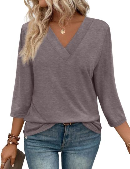 Women's V Neck 3/4 Long Sleeve Loose Fit Tops