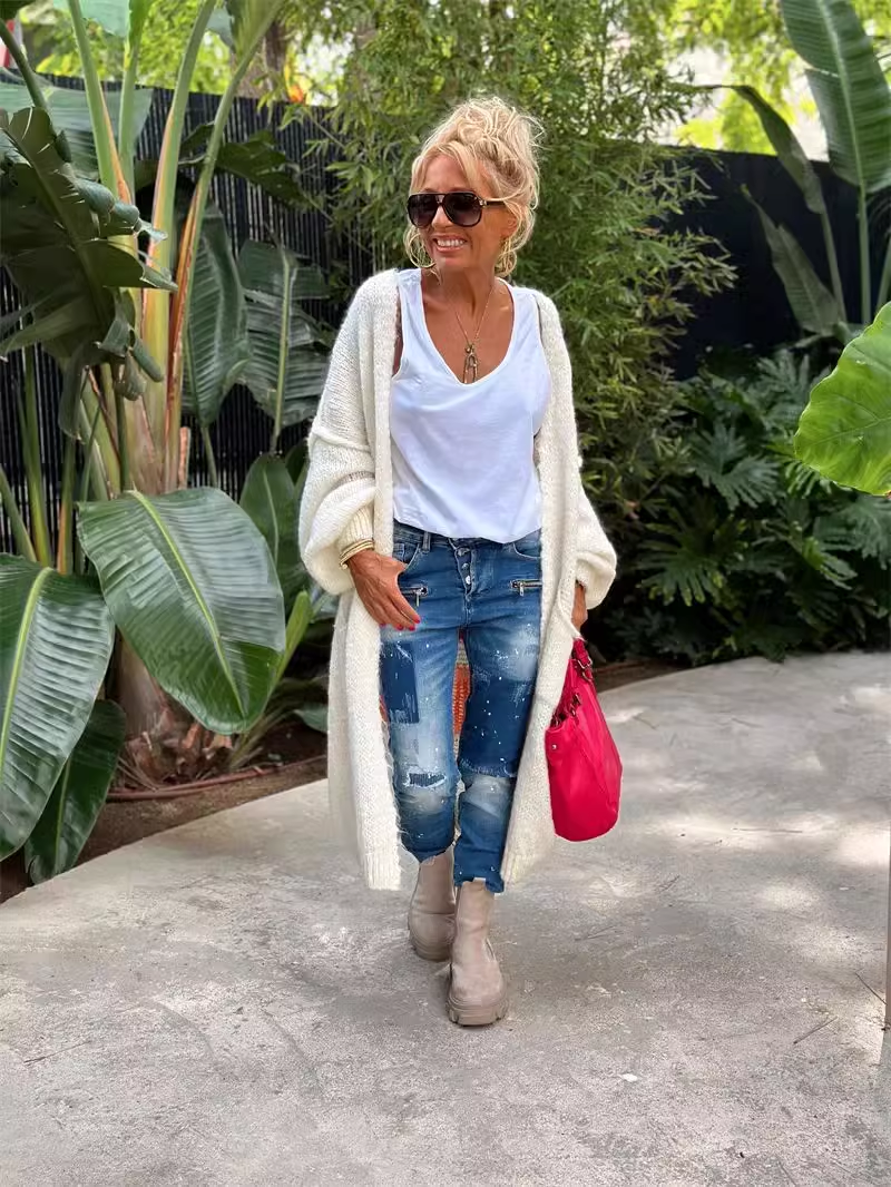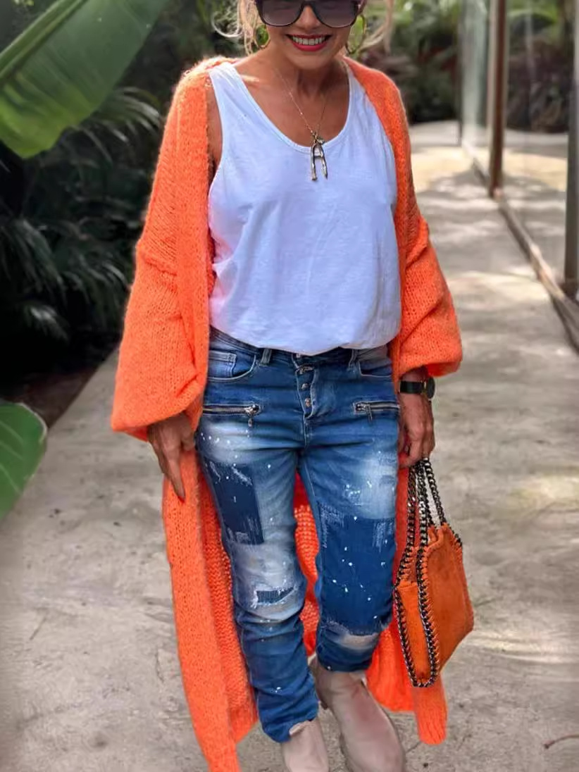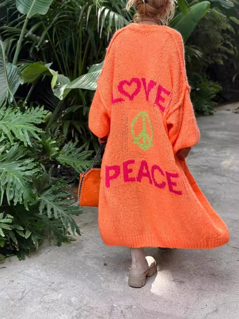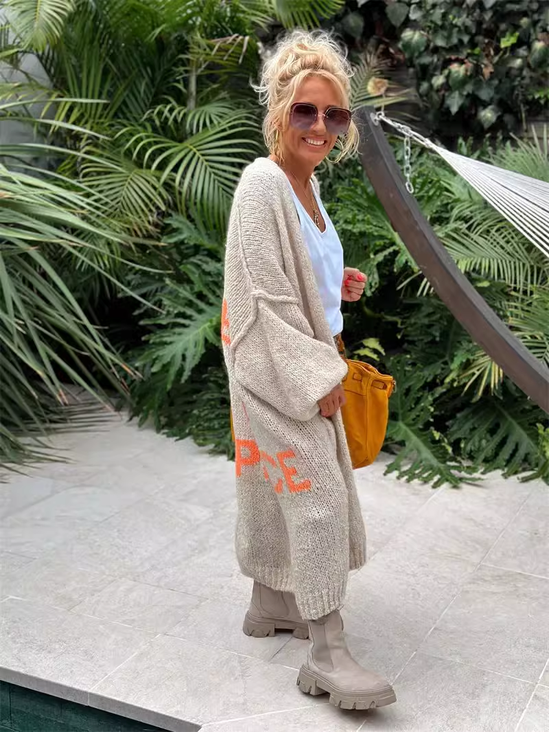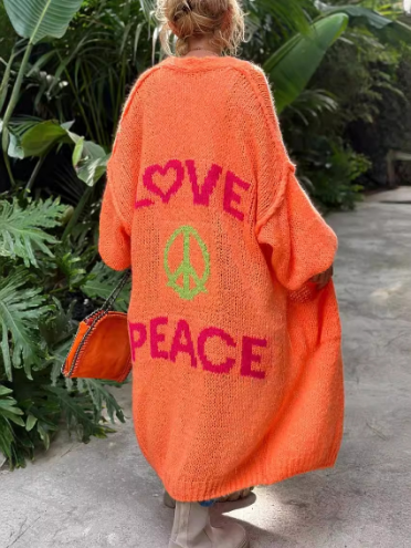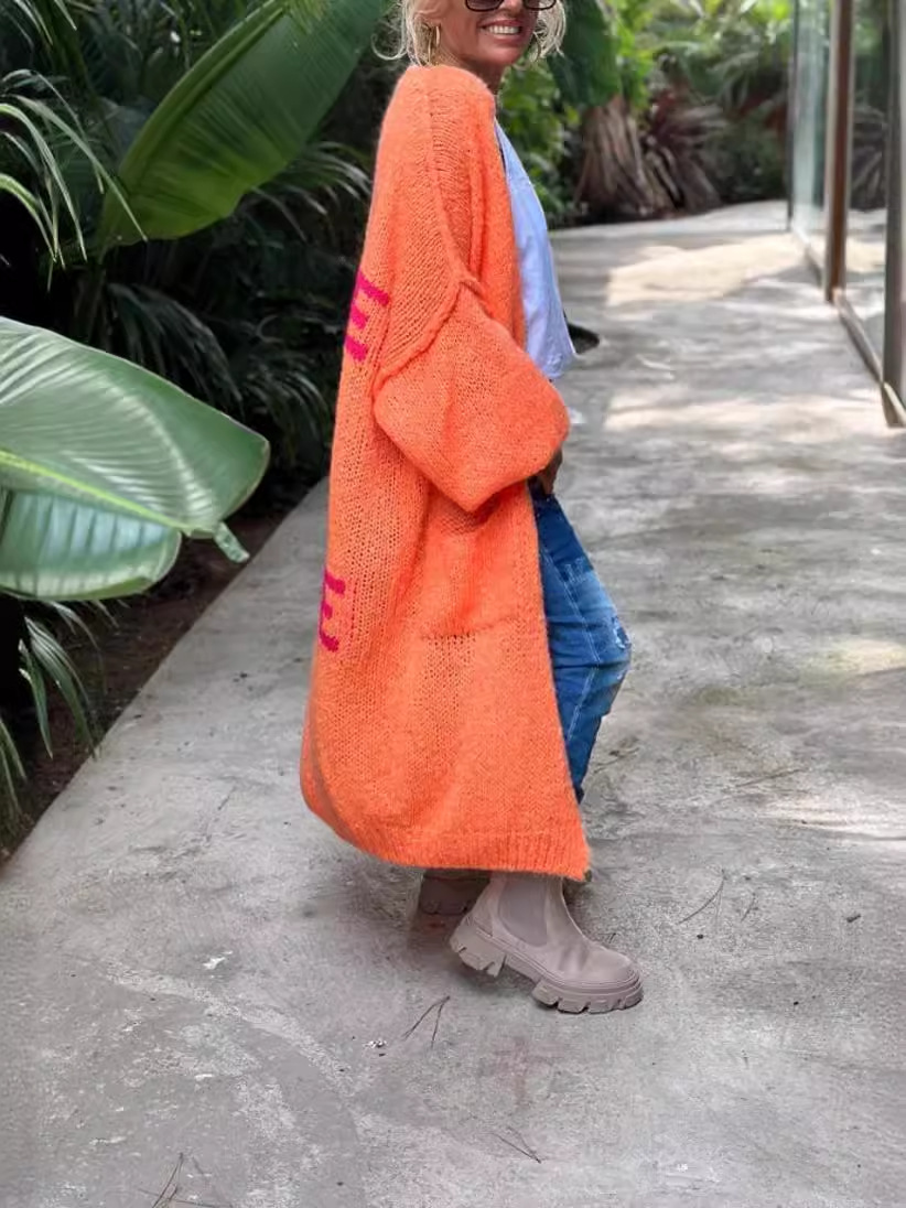 2025 Extended casual cardigan jacquard knit coat