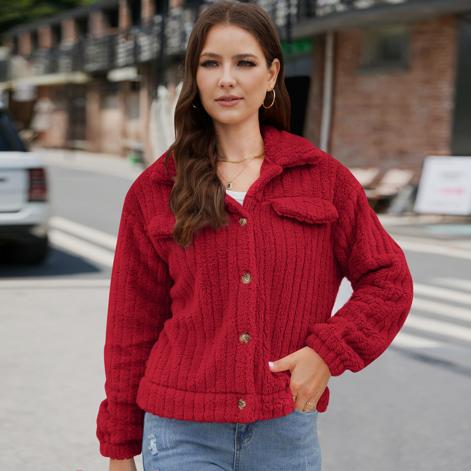 2025 Fleece cardigan lapel short coat